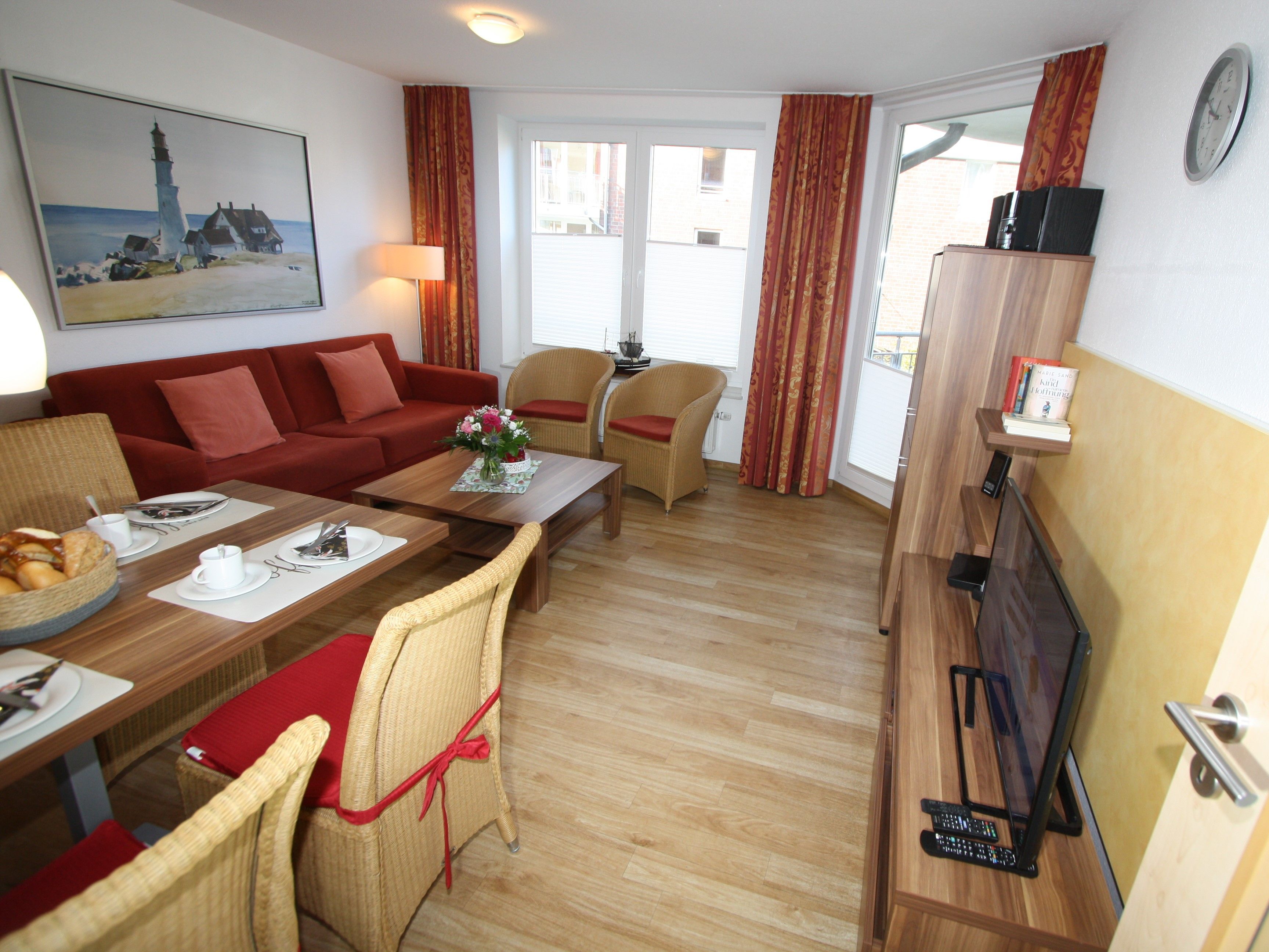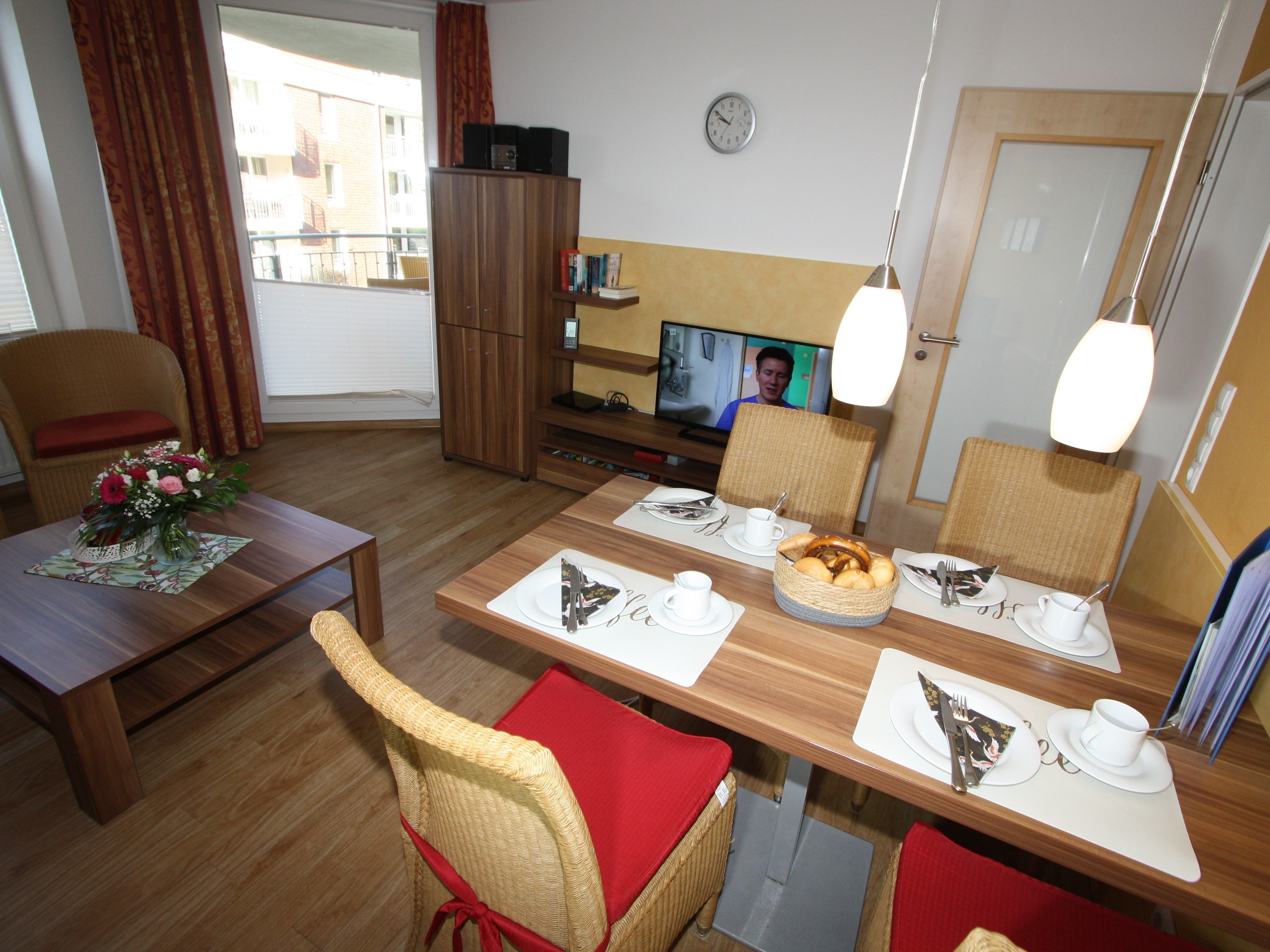 Wir lieben die Nordsee und daher haben wir auch diese Wohnung im 1. OG mit allem ausgestattet, was für einen erholsamen Urlaub notwendig ist. Auf über ca. 60 m² finden Sie ein geräumiges Wohn-/Esszimmer mit integrierter Küche, zwei Schlafzimmern, Bad, Abstellraum und Balkon.
