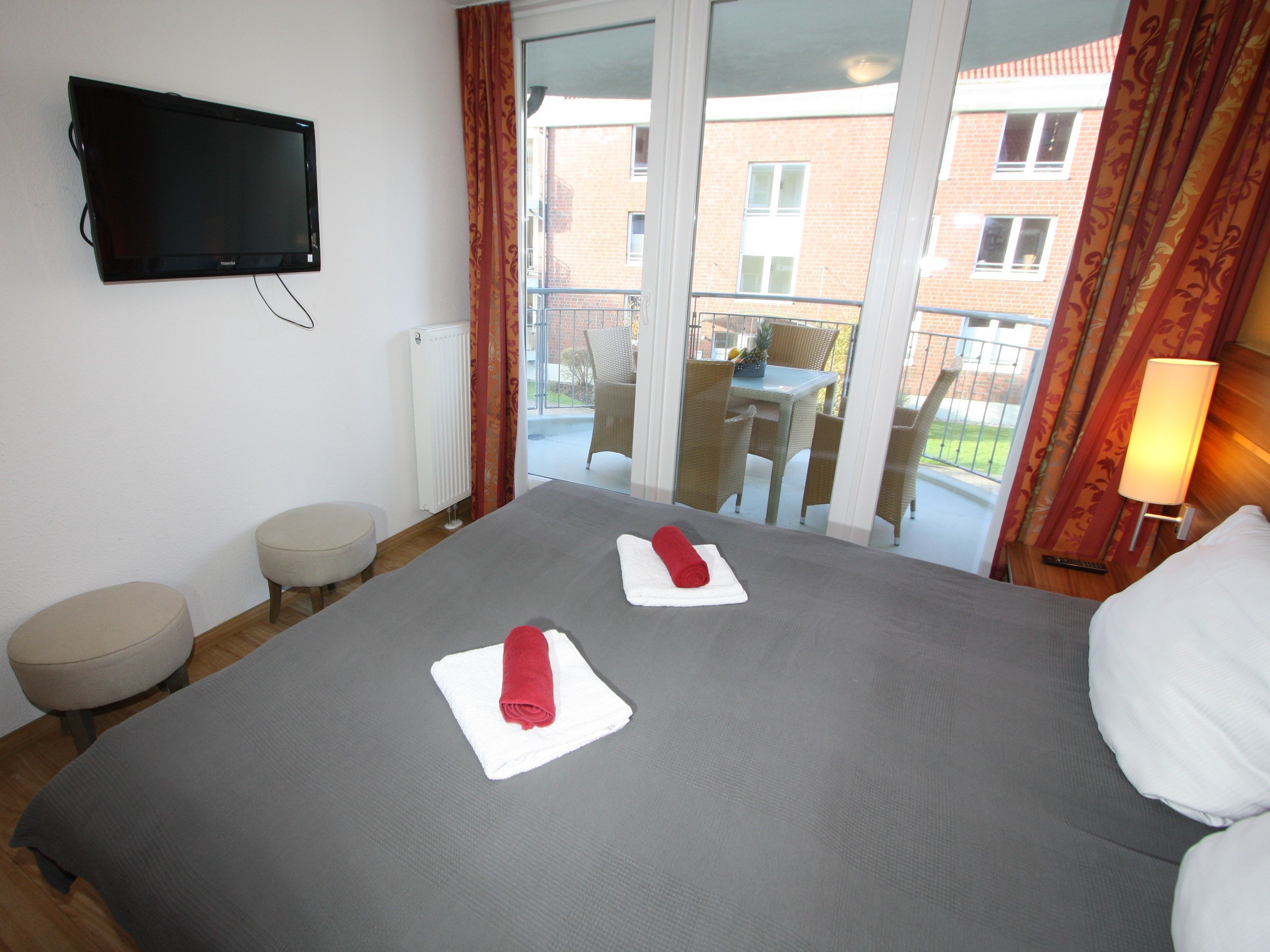 Das zweite Schlafzimmer hat eine multifunktionale Ablagefläche (nutzbar für die Wickelkomode oder auch das Laptop (WLAN kostenfrei im Haus). Flachbildschirme sind in beiden Schlafzimmern vorhanden.
