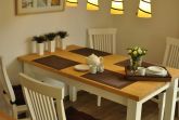 Ein gemütlicher und durch die großen Fensterfronten angenehm heller Wohnraum mit Essbereich, der reichlich Platz bietet für gemeinsame Mahlzeiten, Spielabende oder einfach zum Entspannen