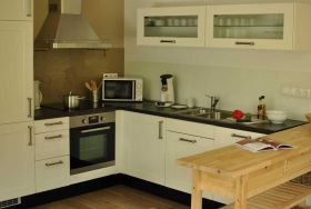 Der vollständig ausgestattete, moderne Küchenbereich mit u.a. Geschirrspüler, Mikrowelle, Toaster, Senseo und Filter-Kaffeemaschine lädt zum gemeinsamen Kochen ein.