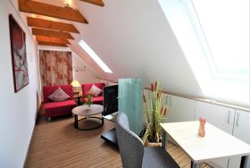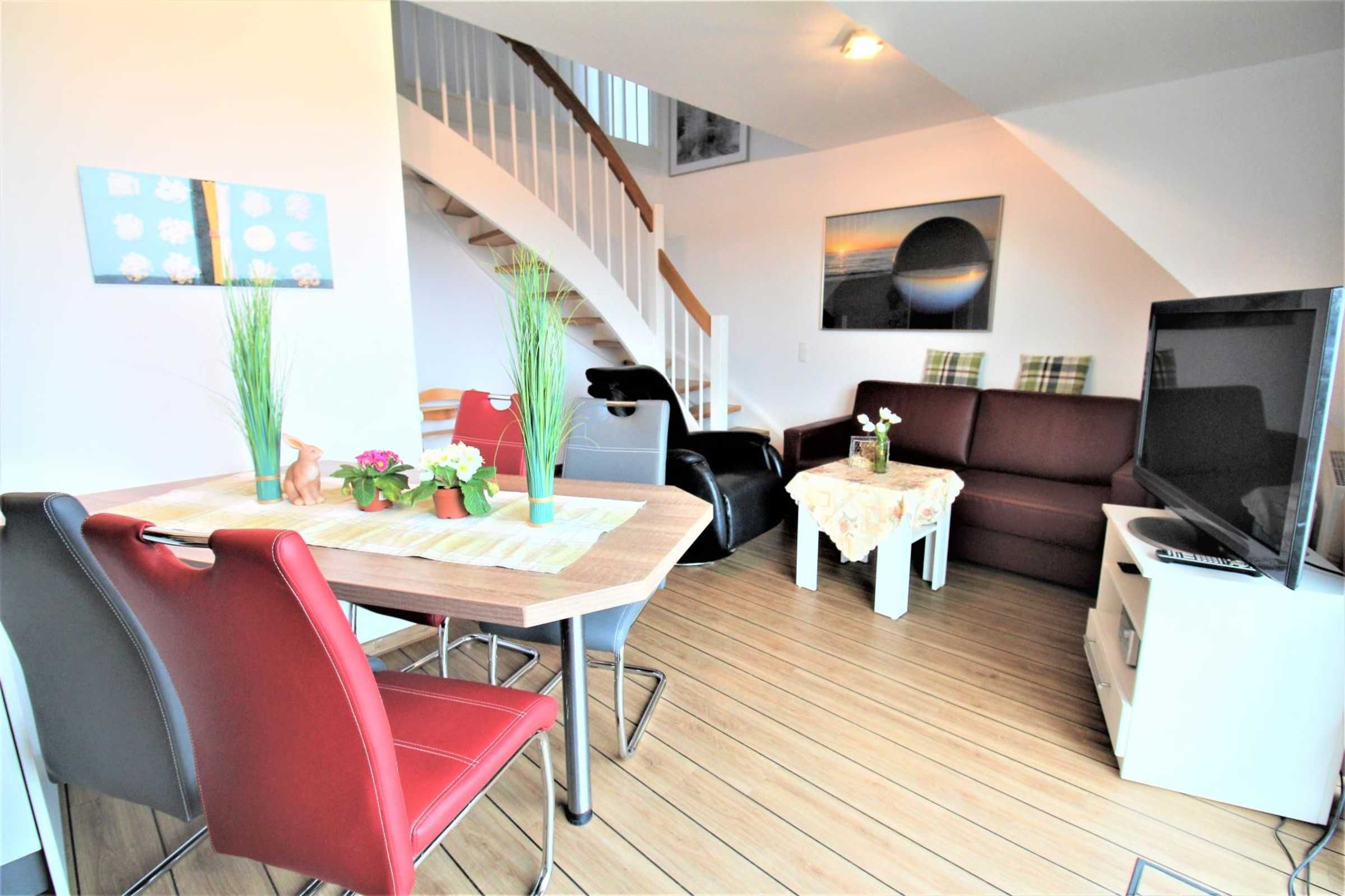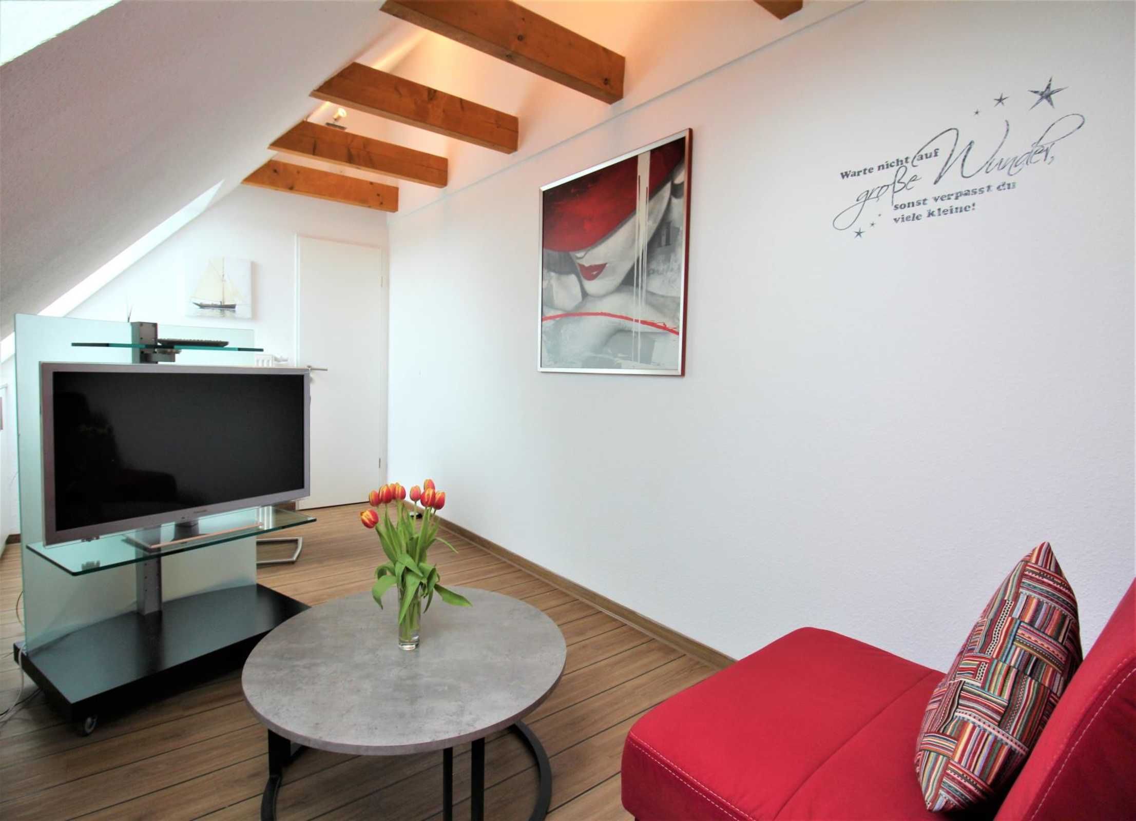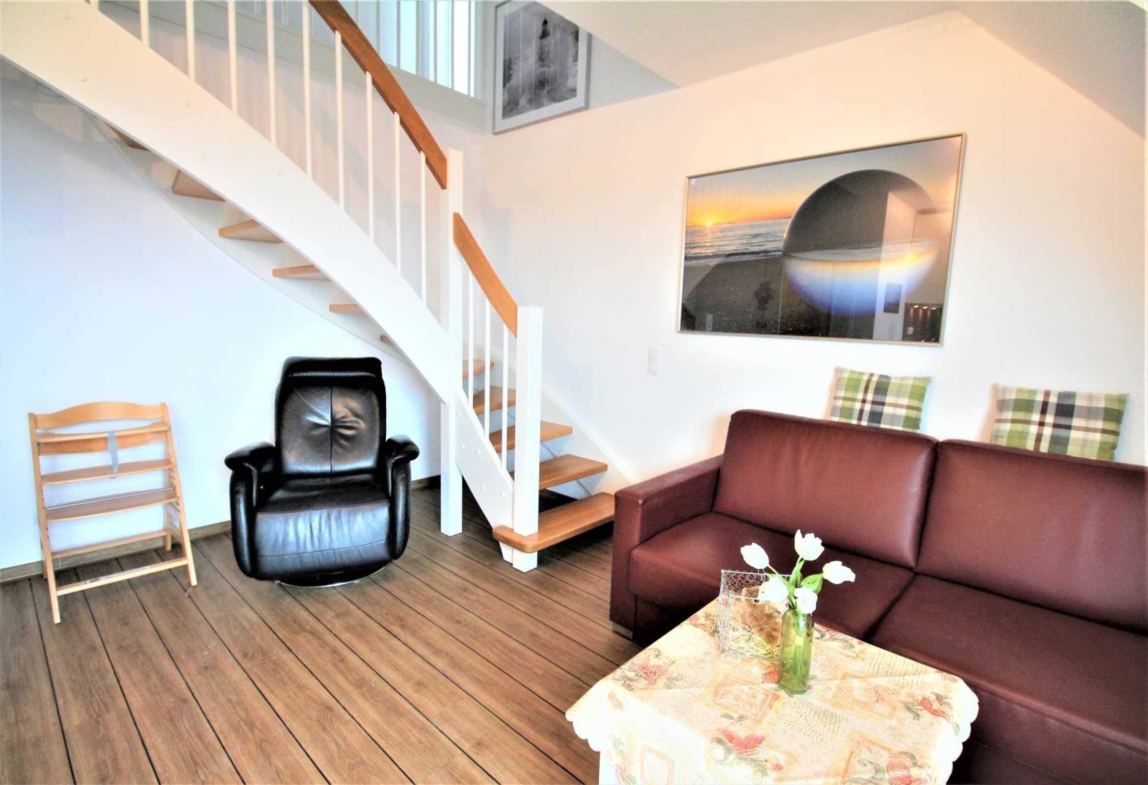 Sie erwartet eine moderne, nach Südwesten ausgerichtete Galeriewohnung mit 75 m² Wohnfläche. Im 4. OG und ruhig gelegen, Sonne den ganzen Tag und in unmittelbarer Nähe zum Strand sowie zum Ortskern.