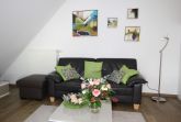Im 3. Obergeschoss großer heller Wohnraum mit bequemer Couch, SAT-TV und Mini-HiFi-Anlage mit DVDPlayer.