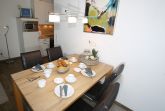 Separater Essplatz, voll ausgestatteter Küchenbereich mit Geschirrspüler und Mikrowelle, möblierter