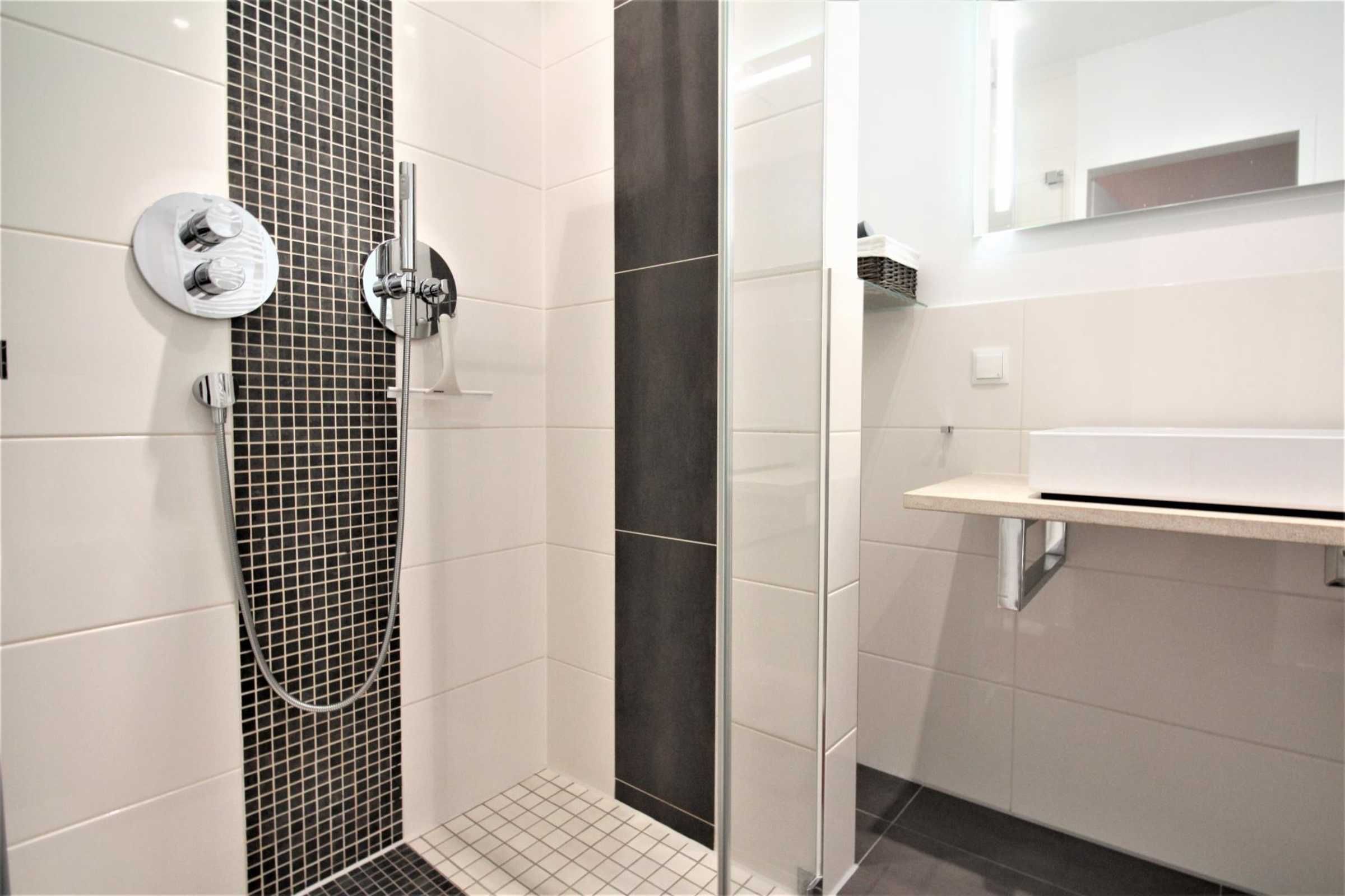 Im 3. Obergeschoss befinden sich der großzügige Wohn- und Essbereich, SAT-TV mit Flachbildschirm, die voll ausgestattete Hochglanz-Einbauküche mit Geschirrspüler und Mikrowelle, zwei Schlafzimmer (davon eins mit SAT-TV), ein hochwertig ausgestattetes ebenerdiges Duschbad mit Rainshower und eine große Sonnenterrasse.
