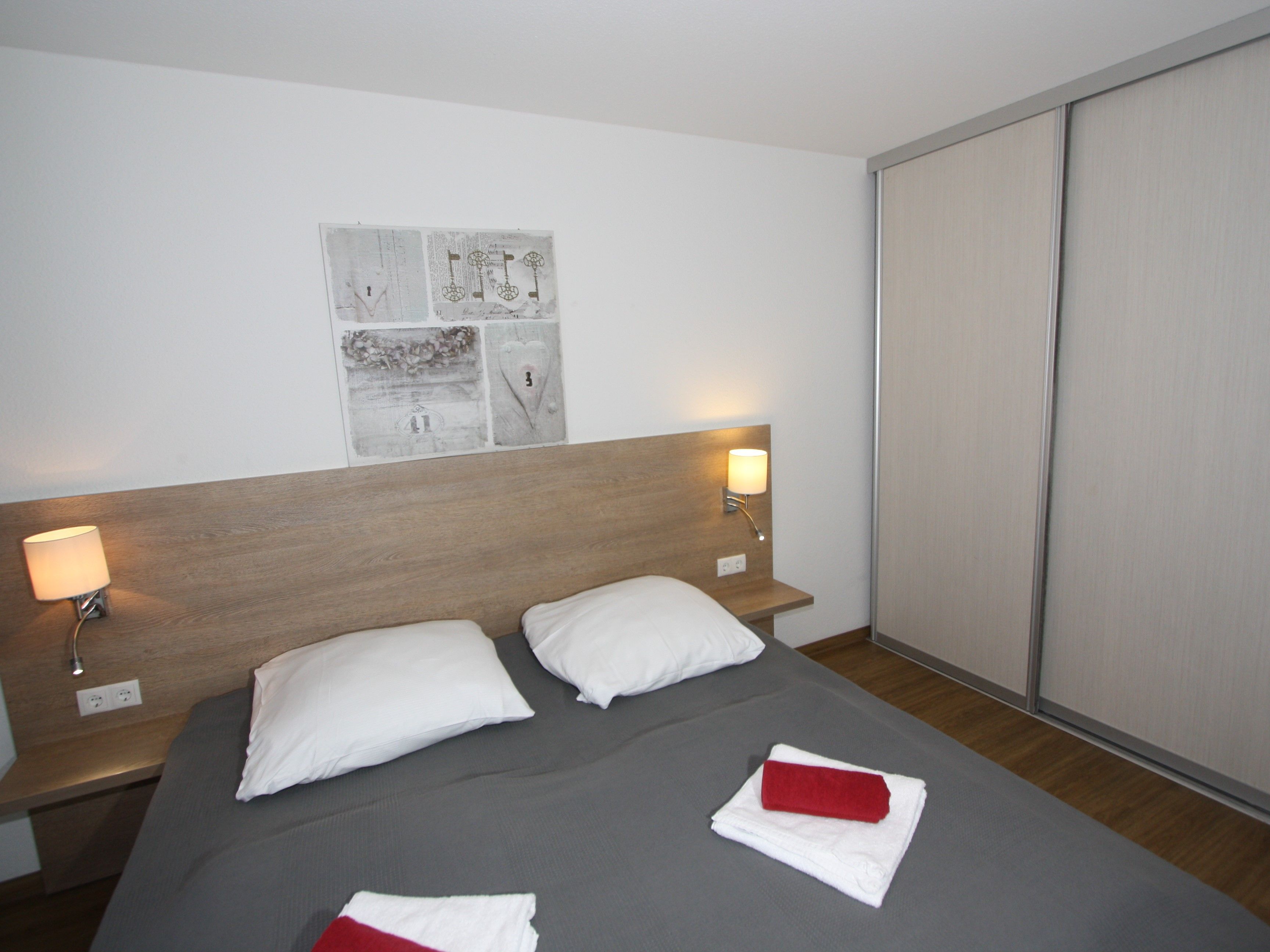 - ein Schlafzimmer mit zwei Einzelbetten, zusammenstellbar