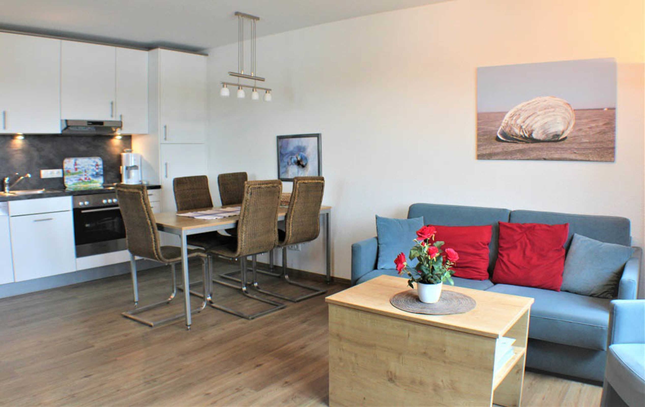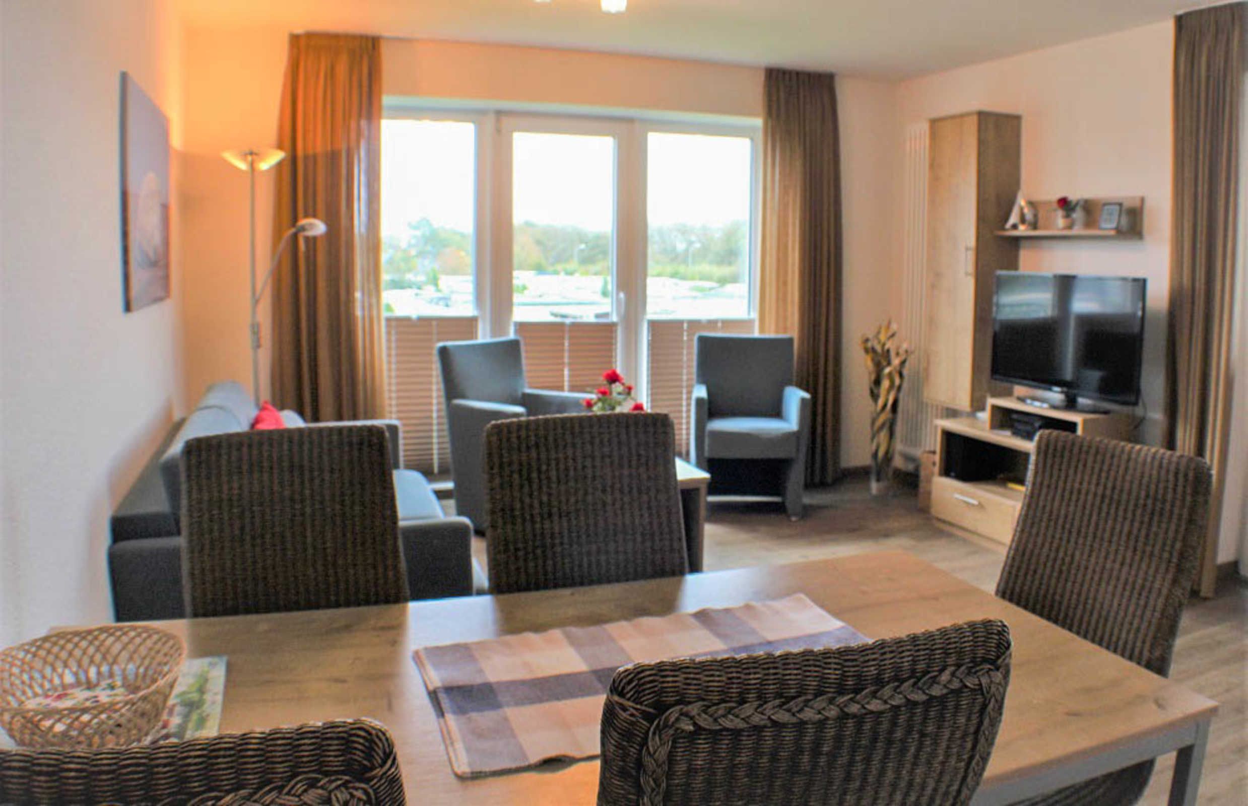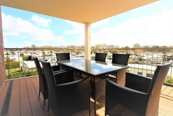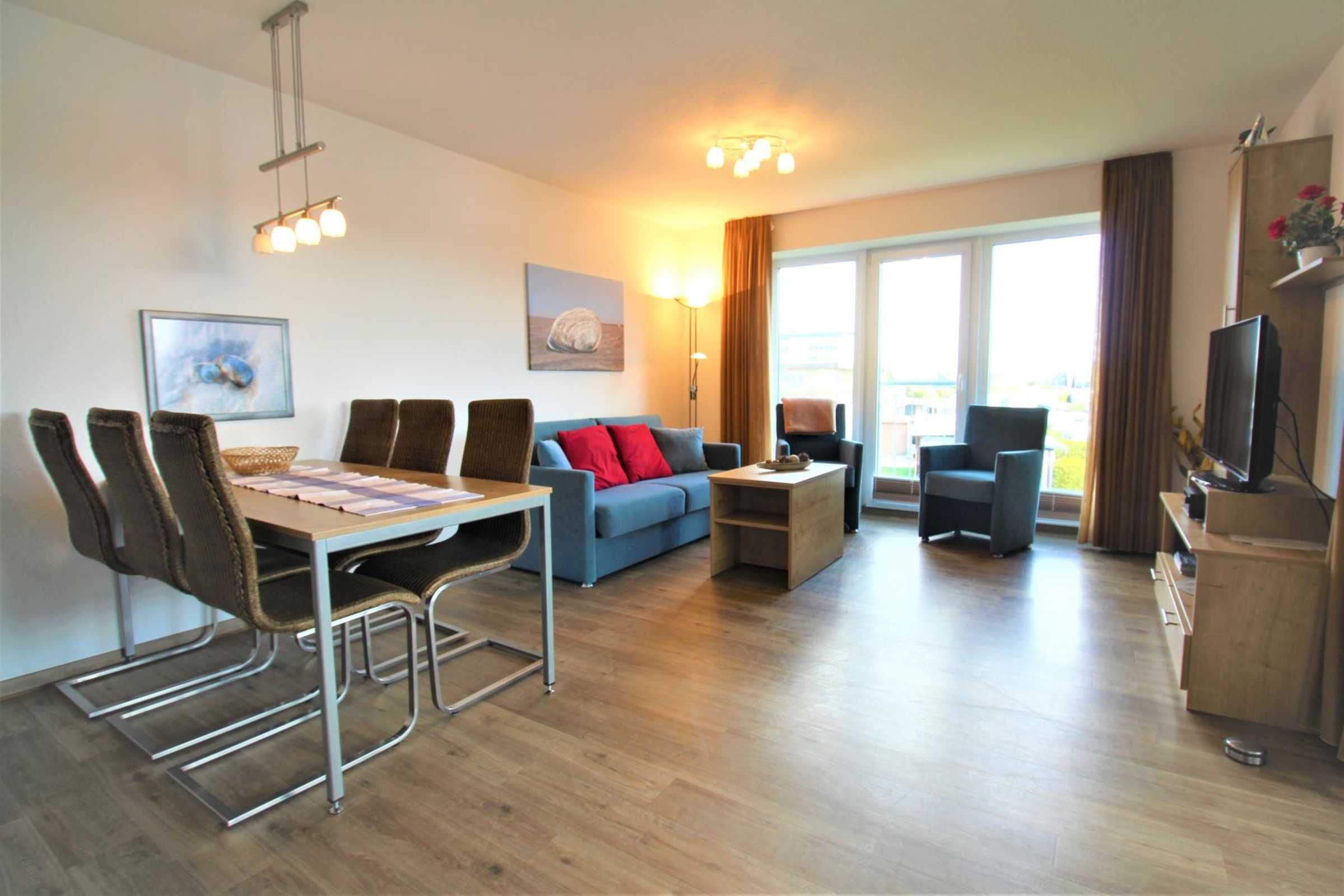 Die Wohnung liegt im 1.Obergeschoss (2. Etage) von Haus 4 und ist nach Süd-Osten ausgerichtet. Auf 79 m² erwartet Sie eine modern und hochwertig ausgestattete Ferienwohnung mit folgenden Merkmalen:
