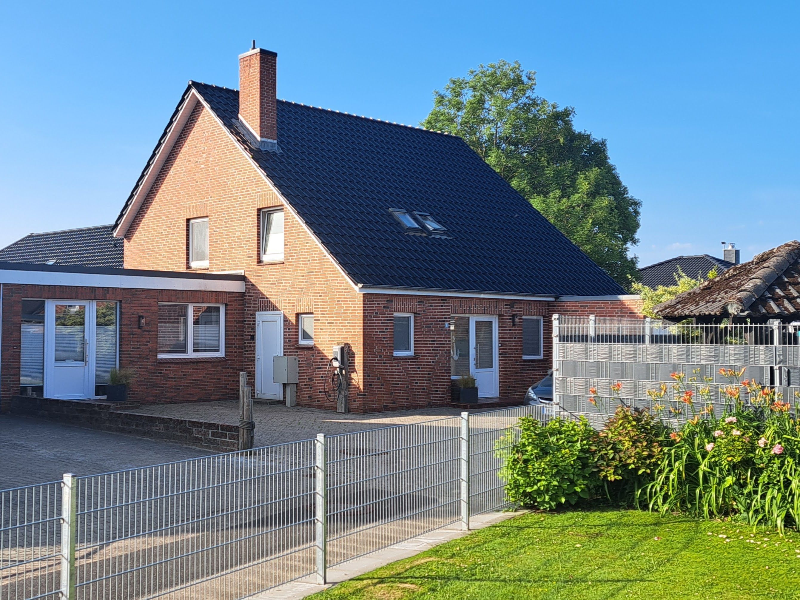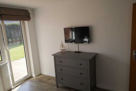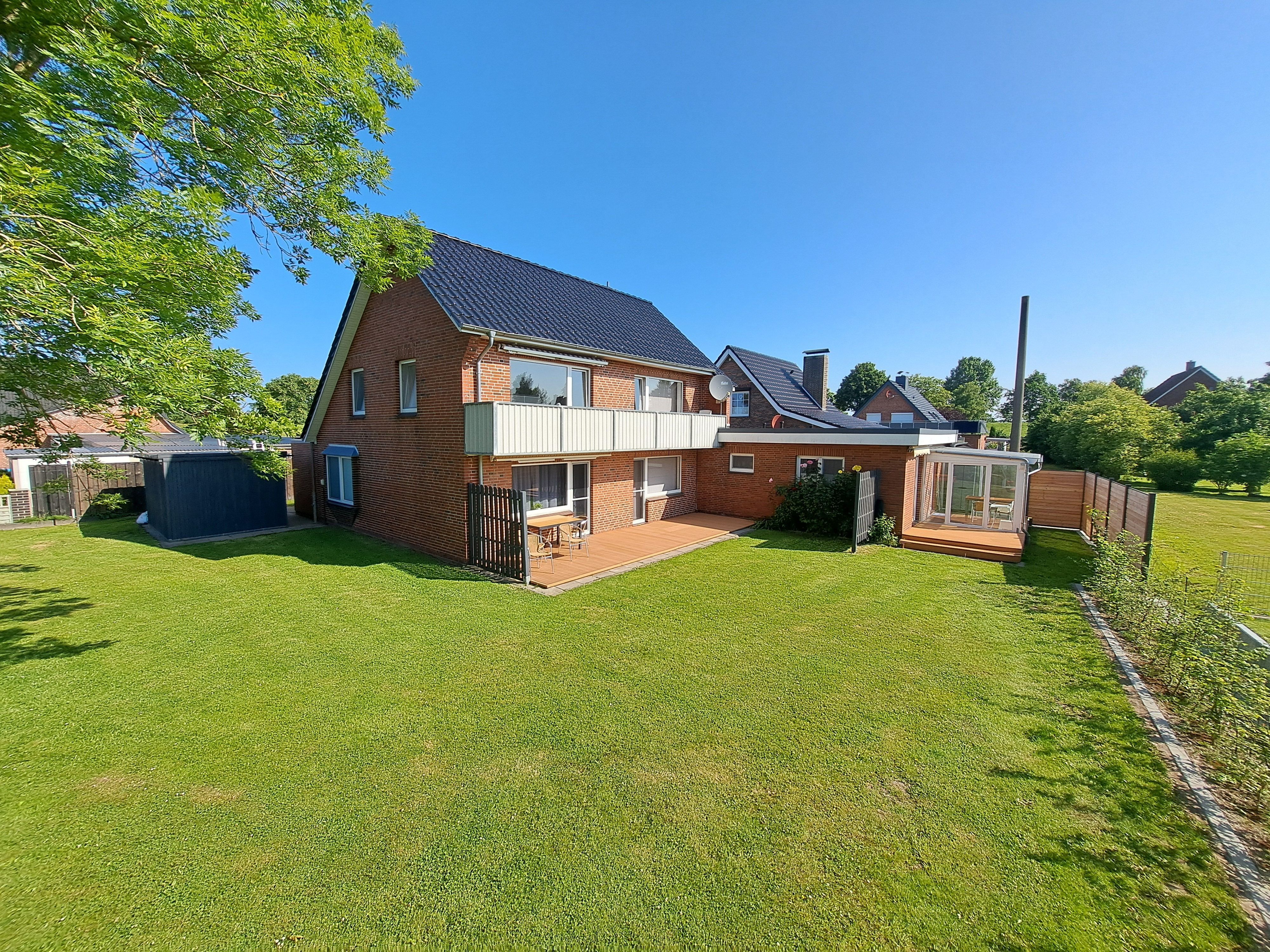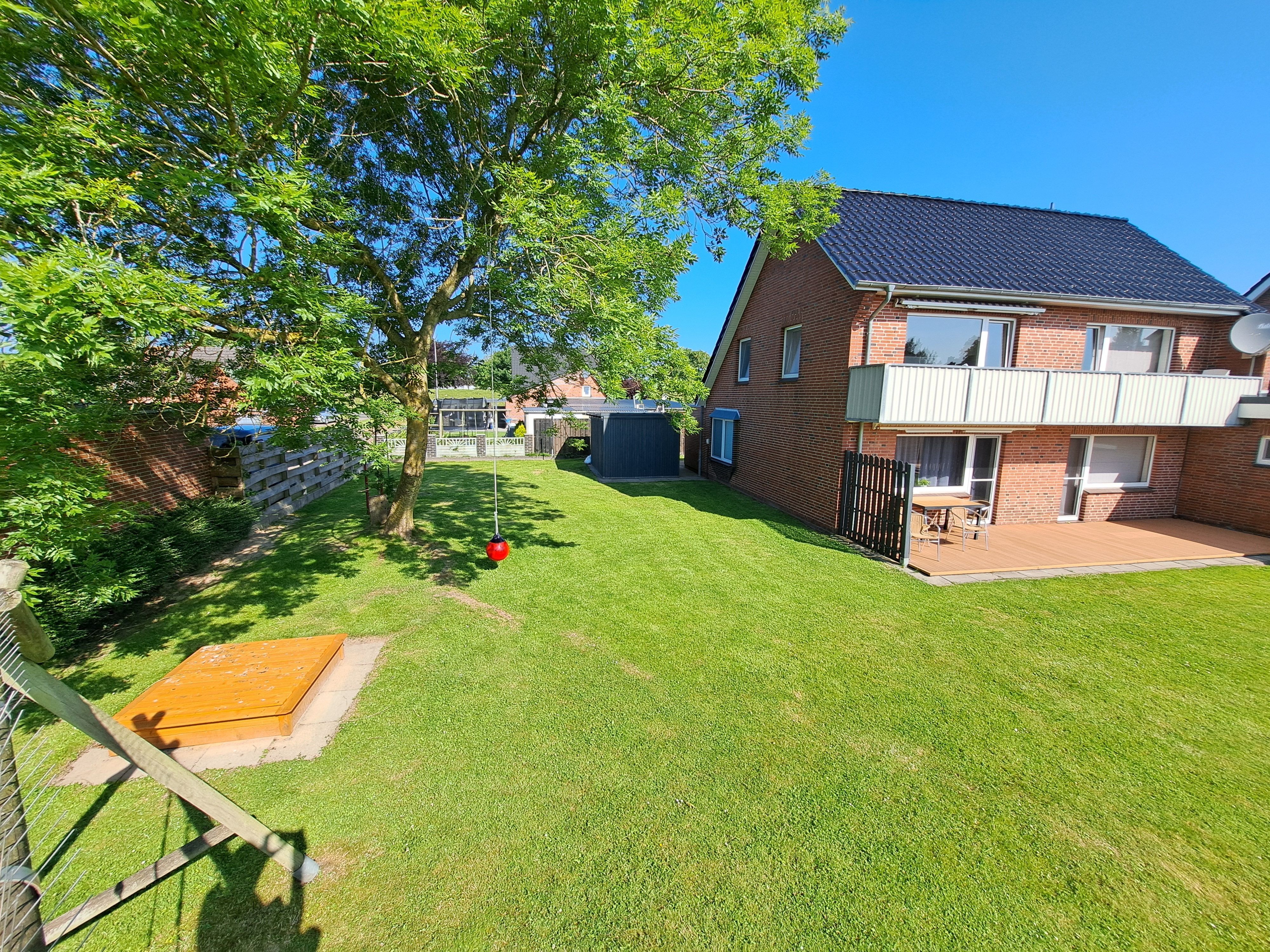 Die Wohnungen „Krabbe“ und „Robbe“ liegen im Erdgeschoß und haben jeweils eine eigene Terrasse. Die Wohnung „Möwe“ befindet sich im Obergeschoß und besitzt einen Balkon. Allen Mietern steht unser 700m² großer Garten zur Gemeinschaftsnutzung zur Verfügung. Dort können Sie entspannen oder auch einmal mit den anderen Mietern ins Gespräch kommen. Die Kinder können die Rutsche, Schaukel und Sandkiste zum Spielen nutzen. Ihren PKW können Sie vor dem Haus und die Fahrräder in einem abschließbaren Schuppen abstellen. Für Ihr E-Fahrzeug ist eine Ladesäule gegen Gebühr vorhanden.