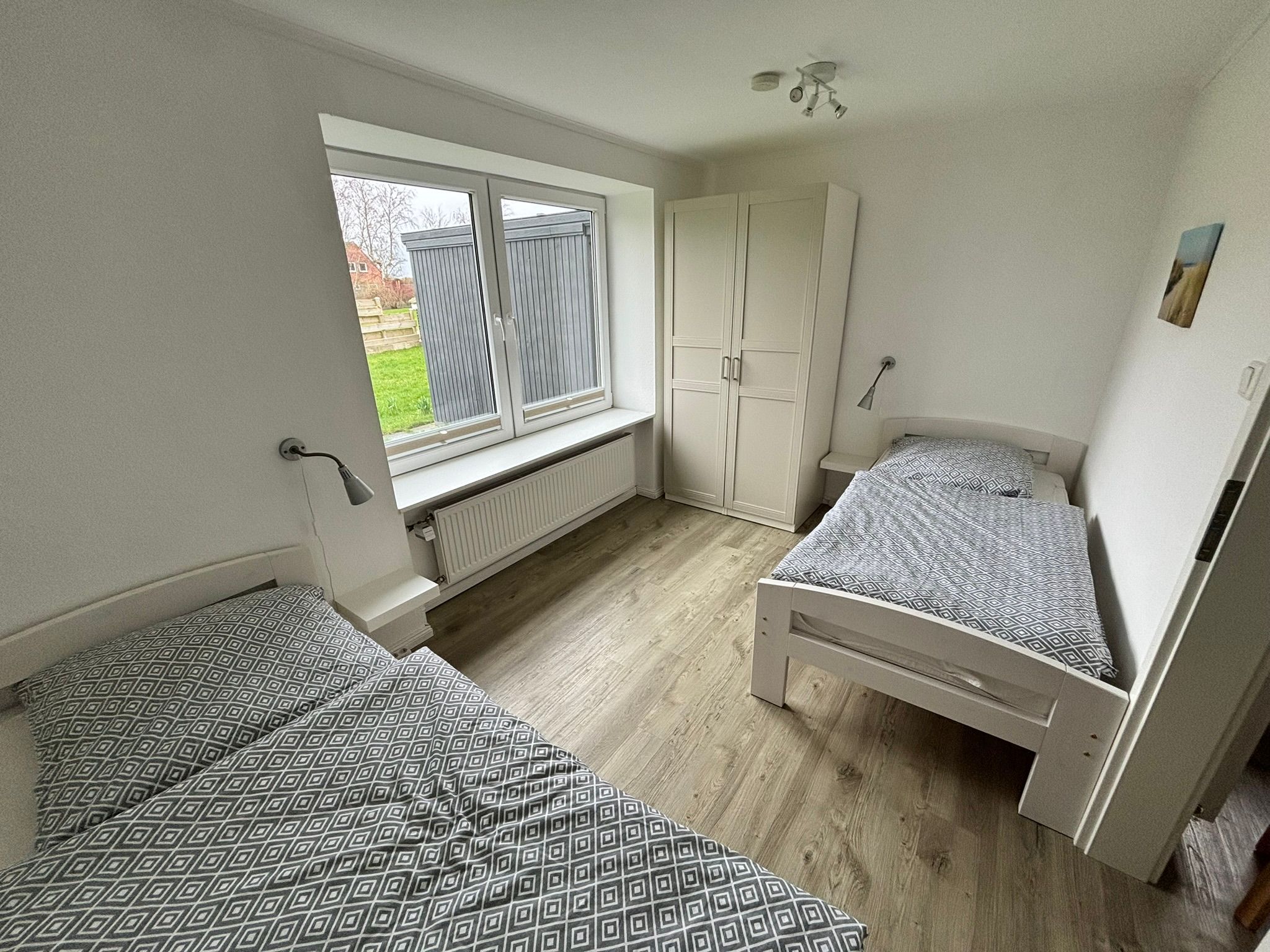 • 2 Schlafräume, eines mit Doppelbett 180x200cm, das andere mit 2 Einzelbetten 90x200cm