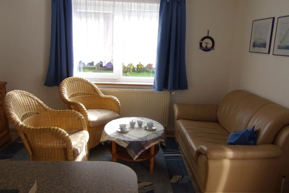 • Gepflegte Ferienwohnung mit hellen Kiefernmöbeln im maritimen Ambiente eingerichtet. Moderne Einbauküche mit Esstresen. Laminat und Teppichboden.