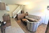 Unten: Wohn-Schlafraum mit bequemer Doppelbettcouch, separater Essplatz, voll ausgestatteter Küchenbereich und SAT-Flachbild-TV.