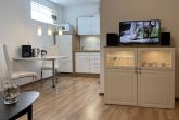 Aufteilung bei ca. 35 m² Wohn-/Nutzfläche: Eingangsbereich, heller Wohn-/Schlafraum mit Schrank-Doppelbett, gemütliche Couch und Sesseln. Essplatz und voll ausgestatteter Küchenbereich mit 2-Platten-Ceranfeld (ohne Backofen), Mikrowelle, Kühlschrank (ohen Gefrierfach), Kaffeemaschine, Wasserkocher, Milchaufschäumer, Toaster und Eierkocher. Modernes Duschbad mit WC. Balkon mit Sitzgarnitur und Panoramaseesicht. Die Bilder sprechen für sich.