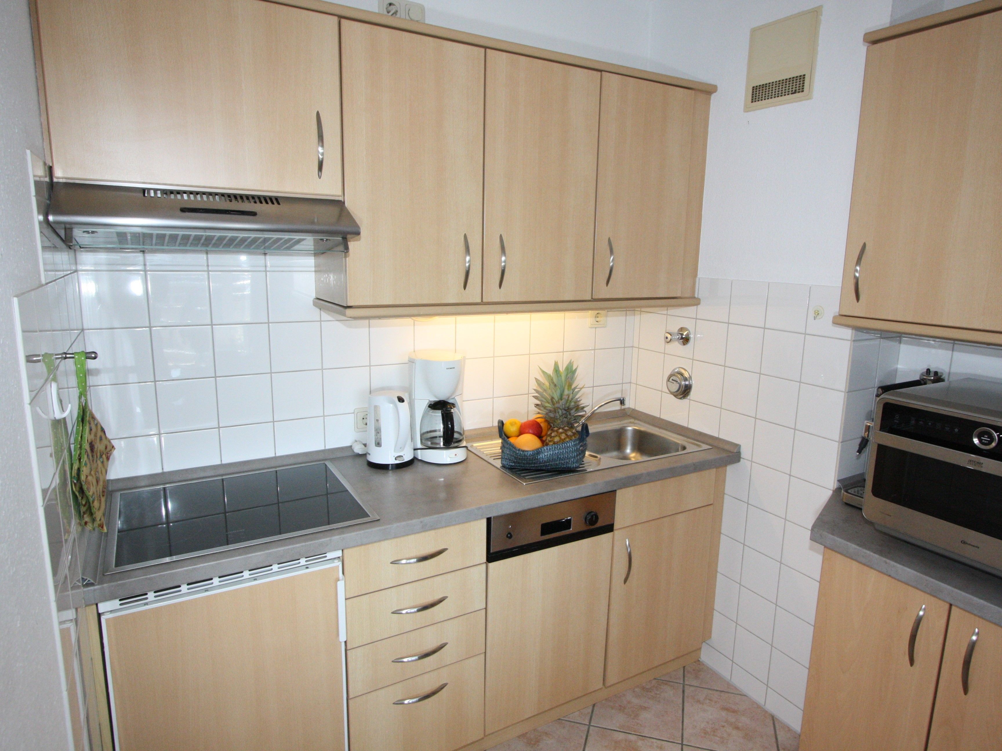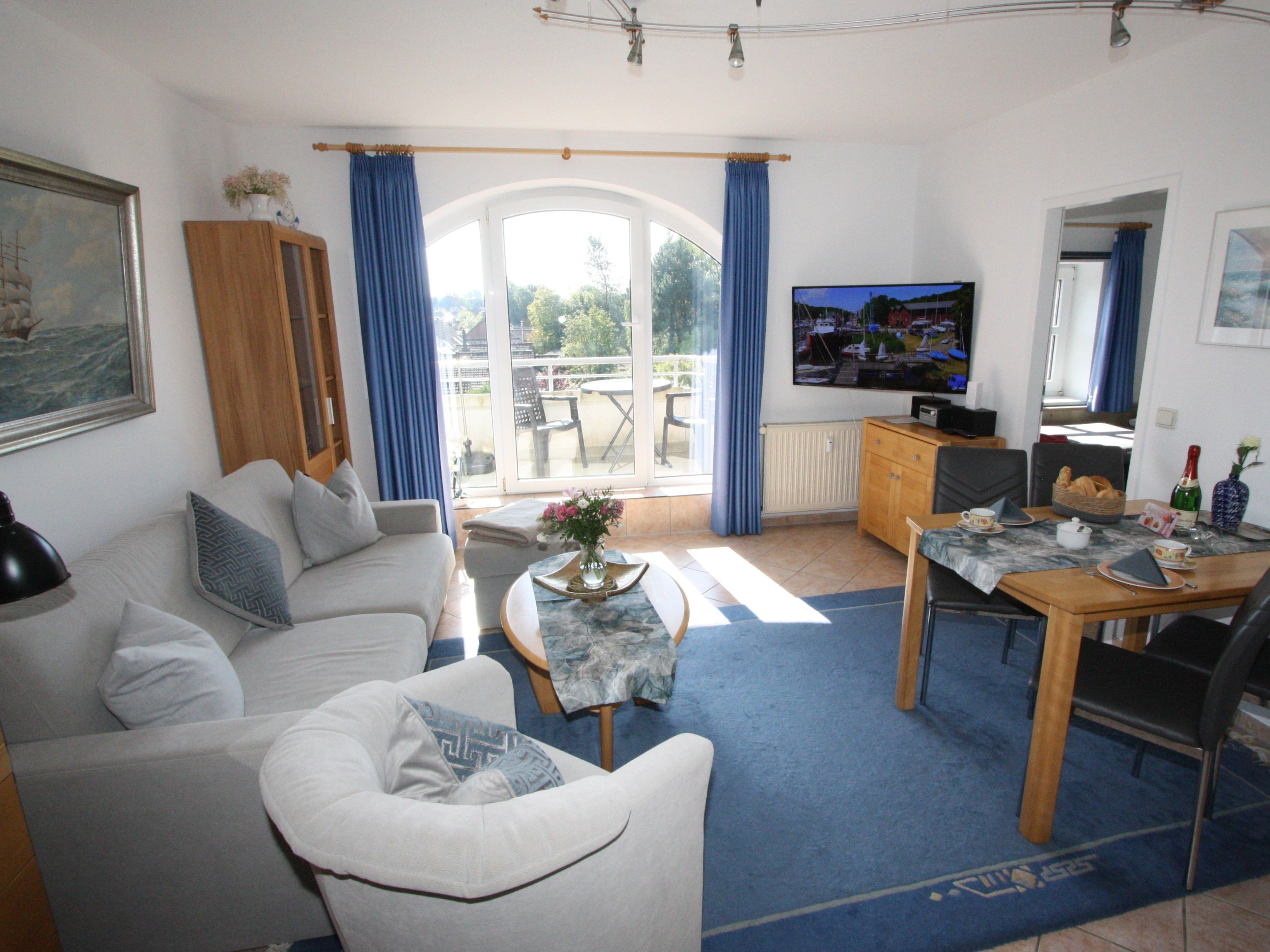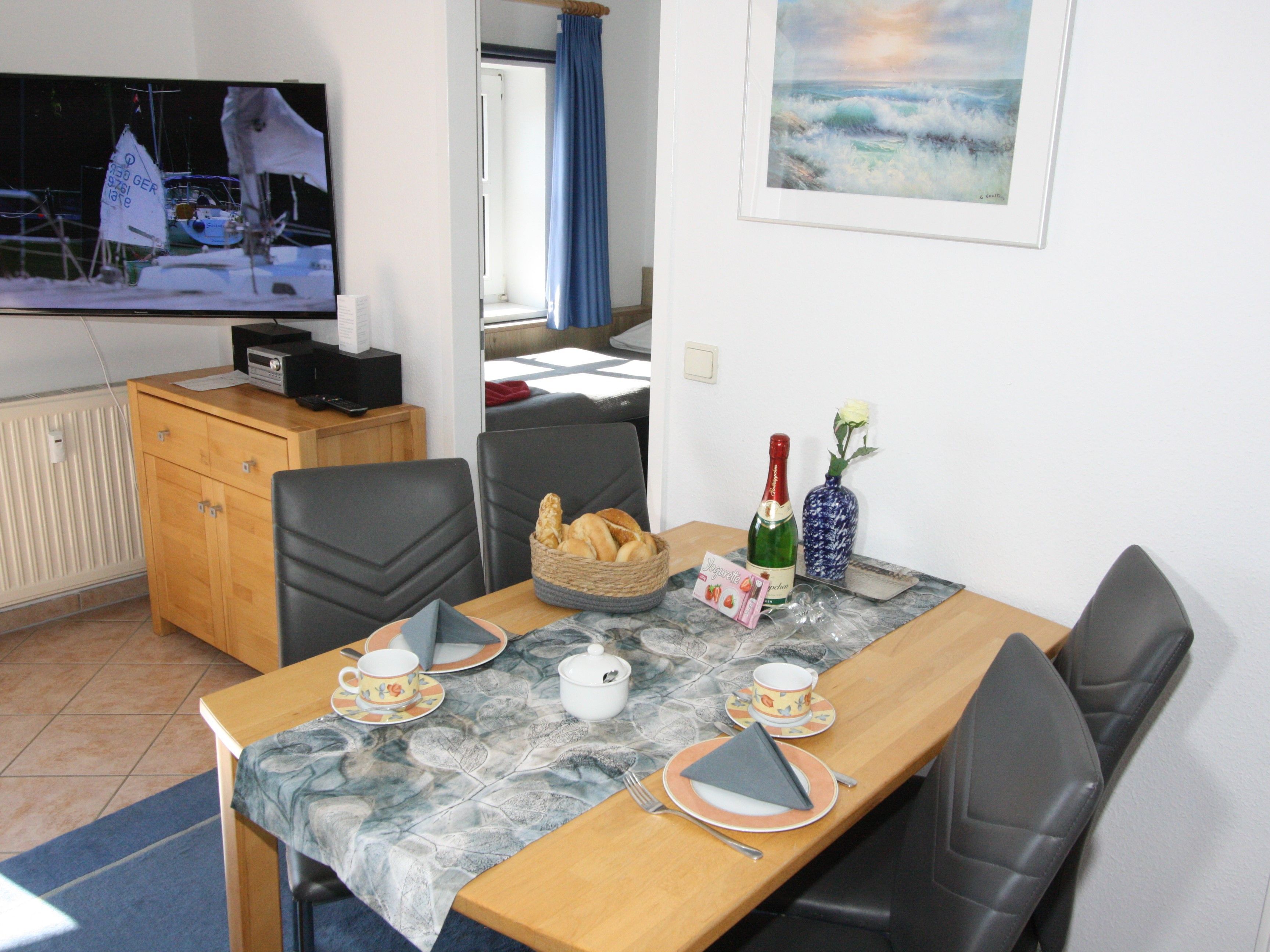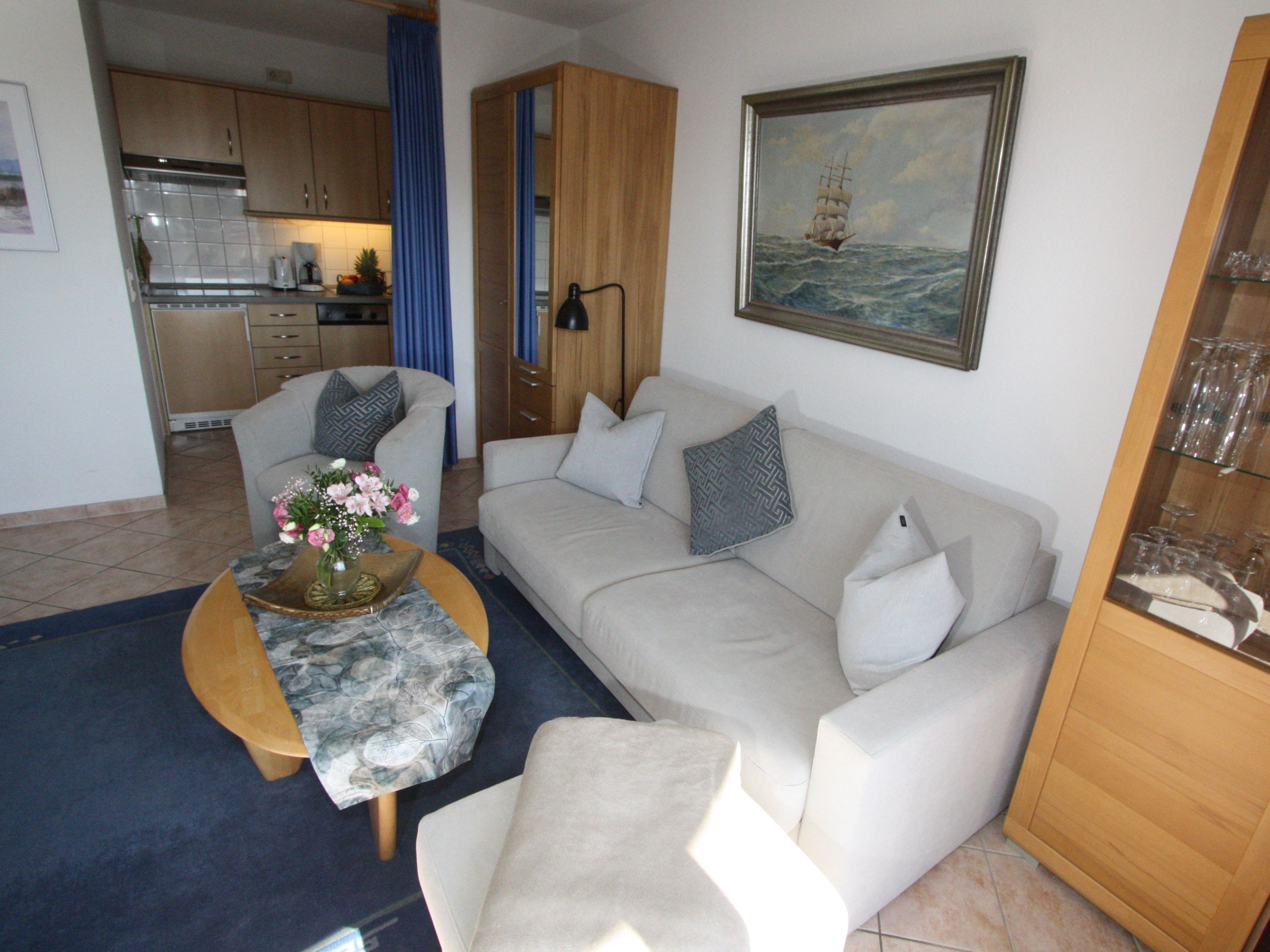 Sie wohnen in einem 2-Zimmer-Appartement mit ca. 41 m² im 2. OG. Wohnraum mit Kabel-Flachbild-TV, separater Essplatz, Küchenbereich mit Geschirrspüler und Mikrowelle, Schlafraum mit getrennten Betten, bequemes Couchbett, modernes Bad mit Dusche/WC.
