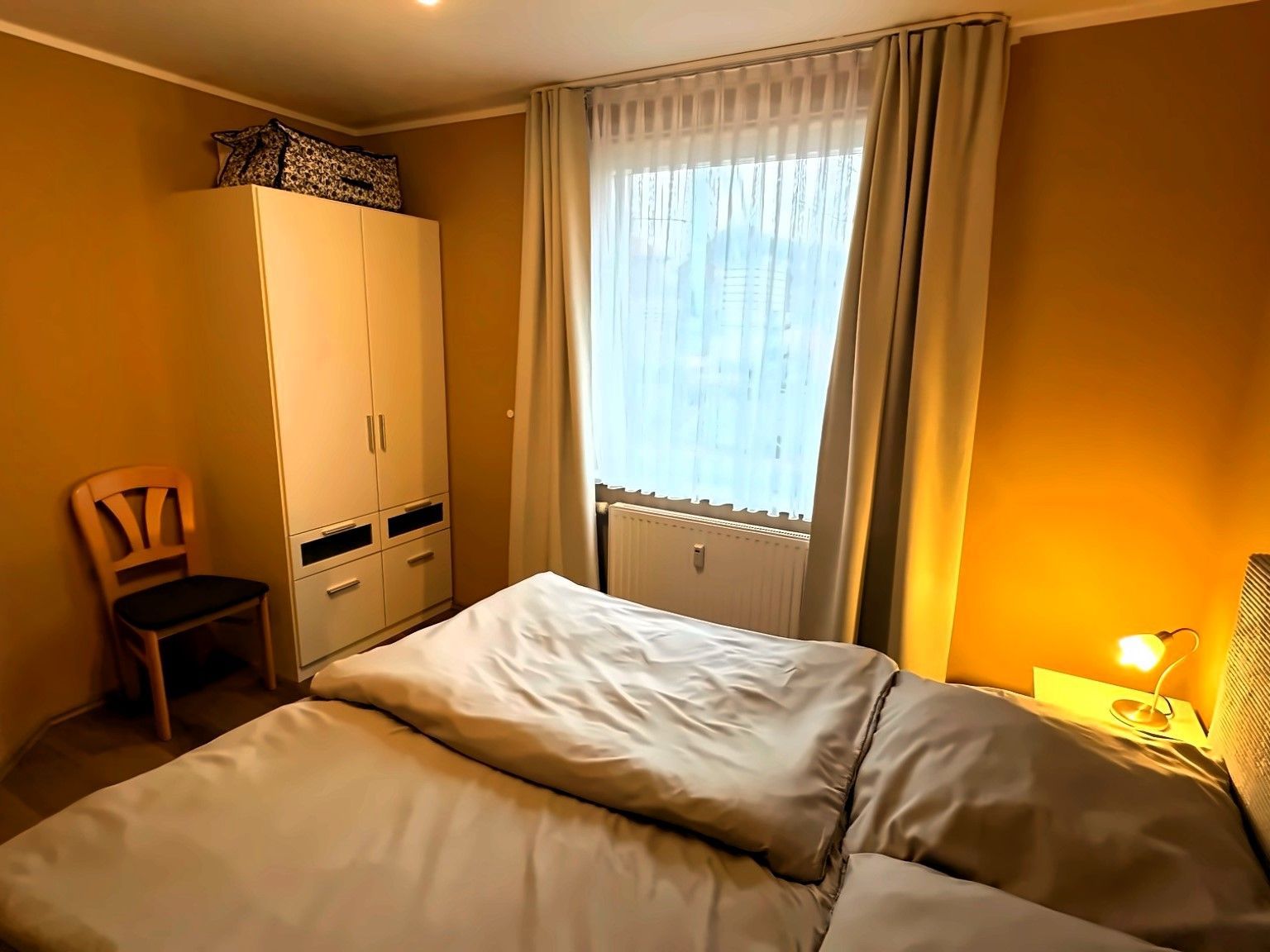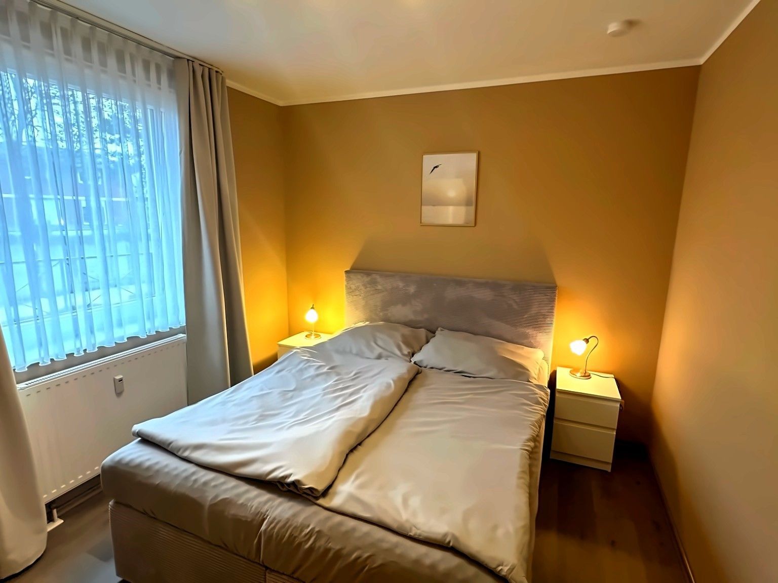 Im zweiten Schlafzimmer befinden sich ebenfalls ein Boxspringbett (160 cm x 200 cm) mit Topper und ein weiterer Kleiderschrank. Beide Schlafzimmer sind mit Verdunkelungsvorhängen ausgestattet.