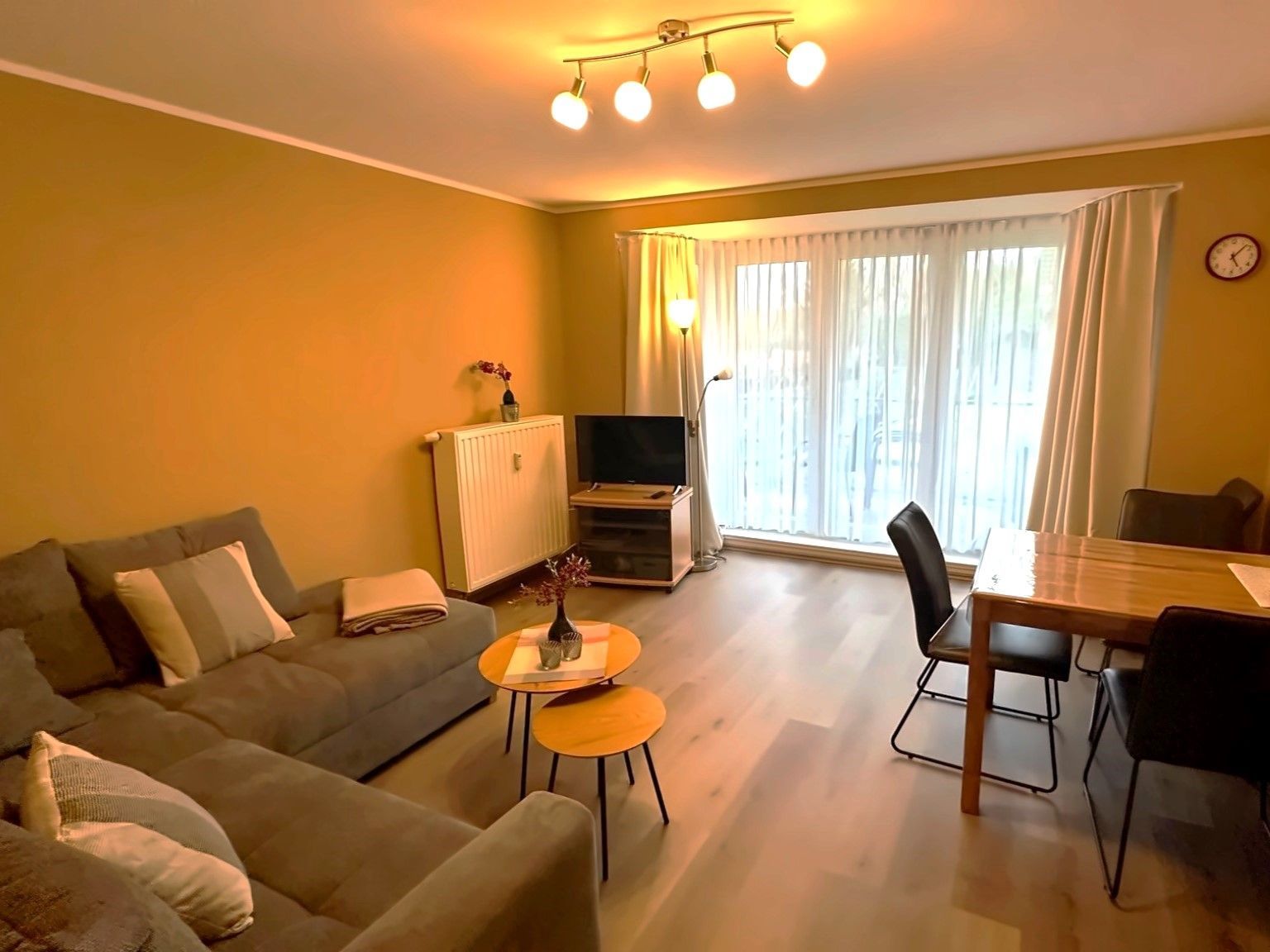 Sie wohnen in einer gemütlichen 3-Zimmer Ferienwohnung mit möblierter und überdachter Süd-Terrasse für bis zu 4 Personen auf ca. 52 m² Wohnfläche.