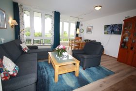 Sie wohnen in einem 3-Zimmer-Appartement für bis zu 4 Personen auf ca. 66 m² Wohnfläche, die über zwei Ebenen verteilt ist.