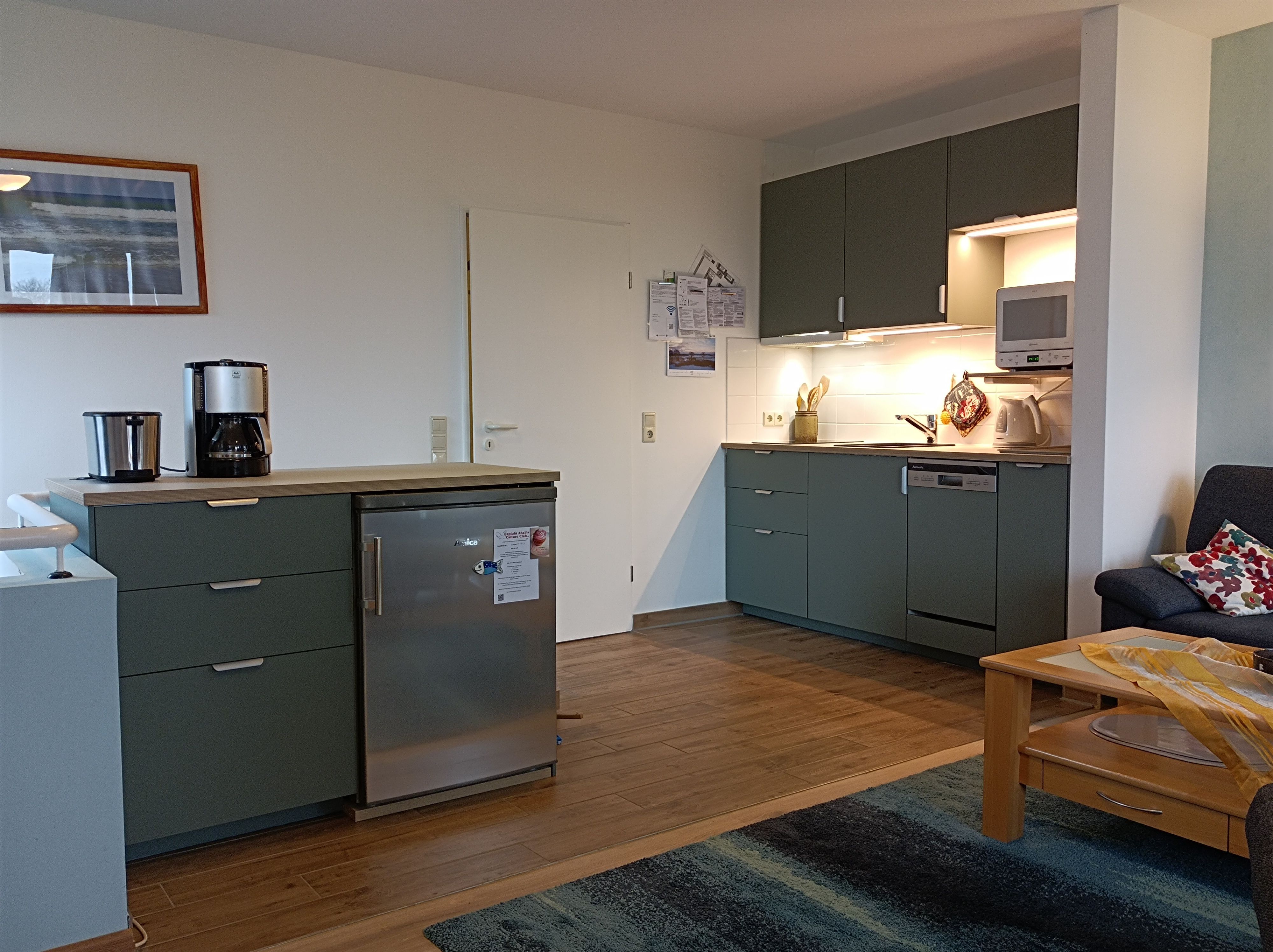 Im Erdgeschoss finden Sie einen großen hellen Wohnraum mit Doppelbettcouch, separatem Essplatz, TV-Flachbildschirm und Internet über WLAN. Ein komplett und reichhaltig ausgestatteter Küchenbereich mit 2-Platten-induktions-Kochfeld, Geschirrspüler, Kühlschrank, Wasserkocher, Toaster, Kaffeemaschine und Mikrowelle mit Grill- und Backfunktionen