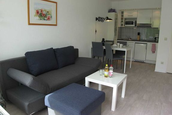 Die 2-Zimmer-Ferienwohnung liegt im 1.OG, ca. 100 m vom Döser Sandstrand entfernt.