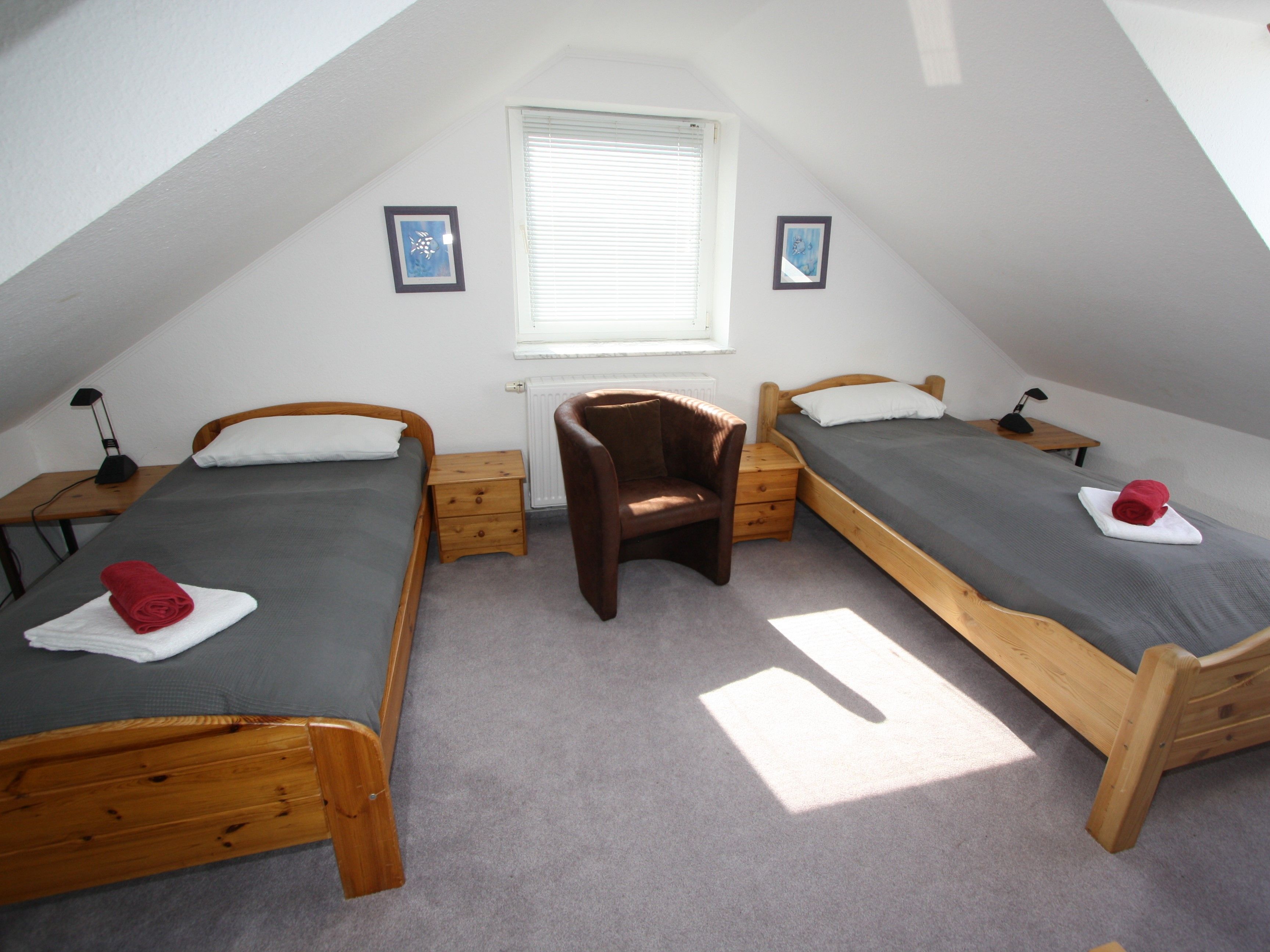 Erstes Schlafzimmer mit Doppelbett, zweites Schlafzimmer mit 3 getrennten Betten, Wohnraum mit TV und
