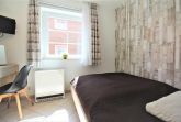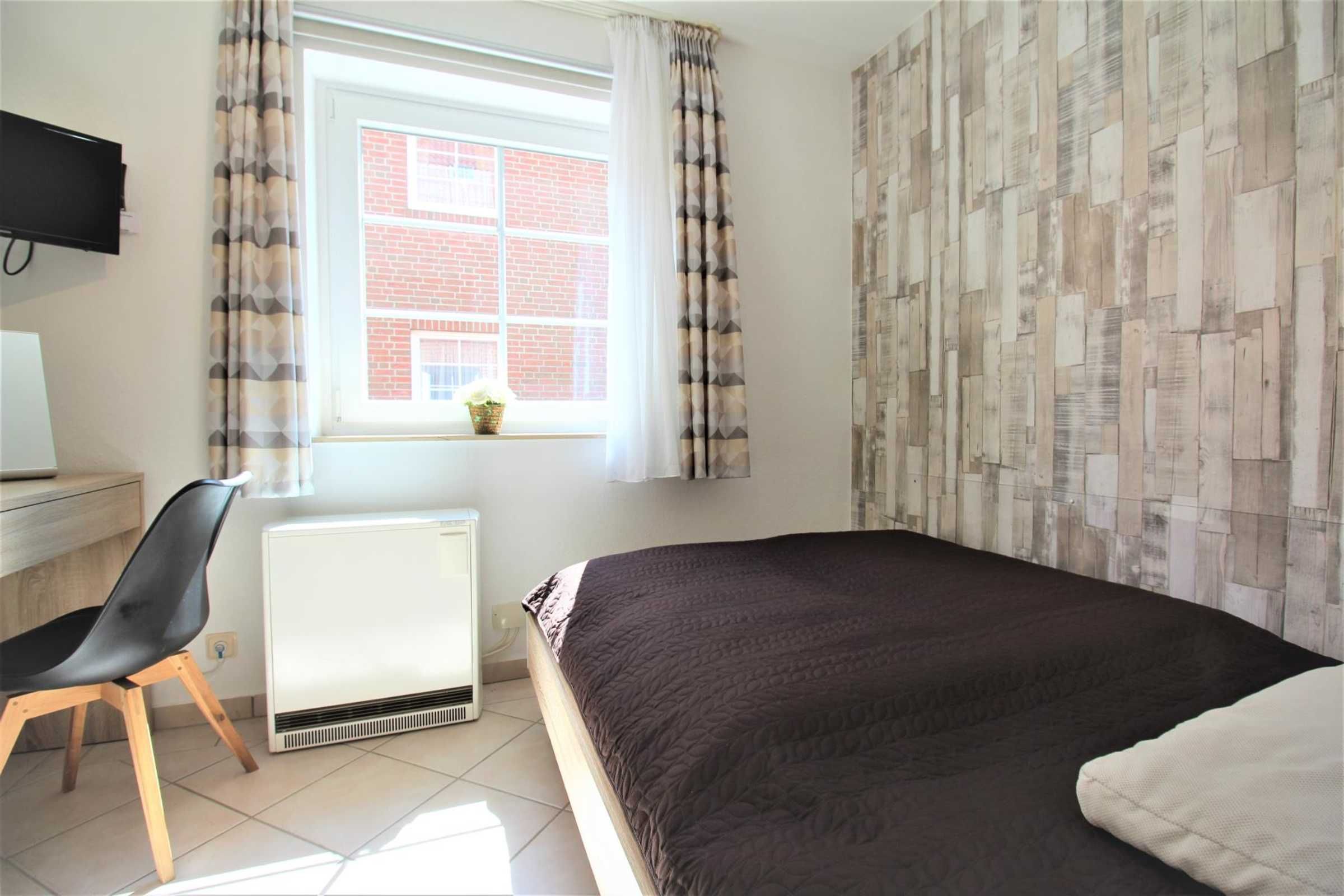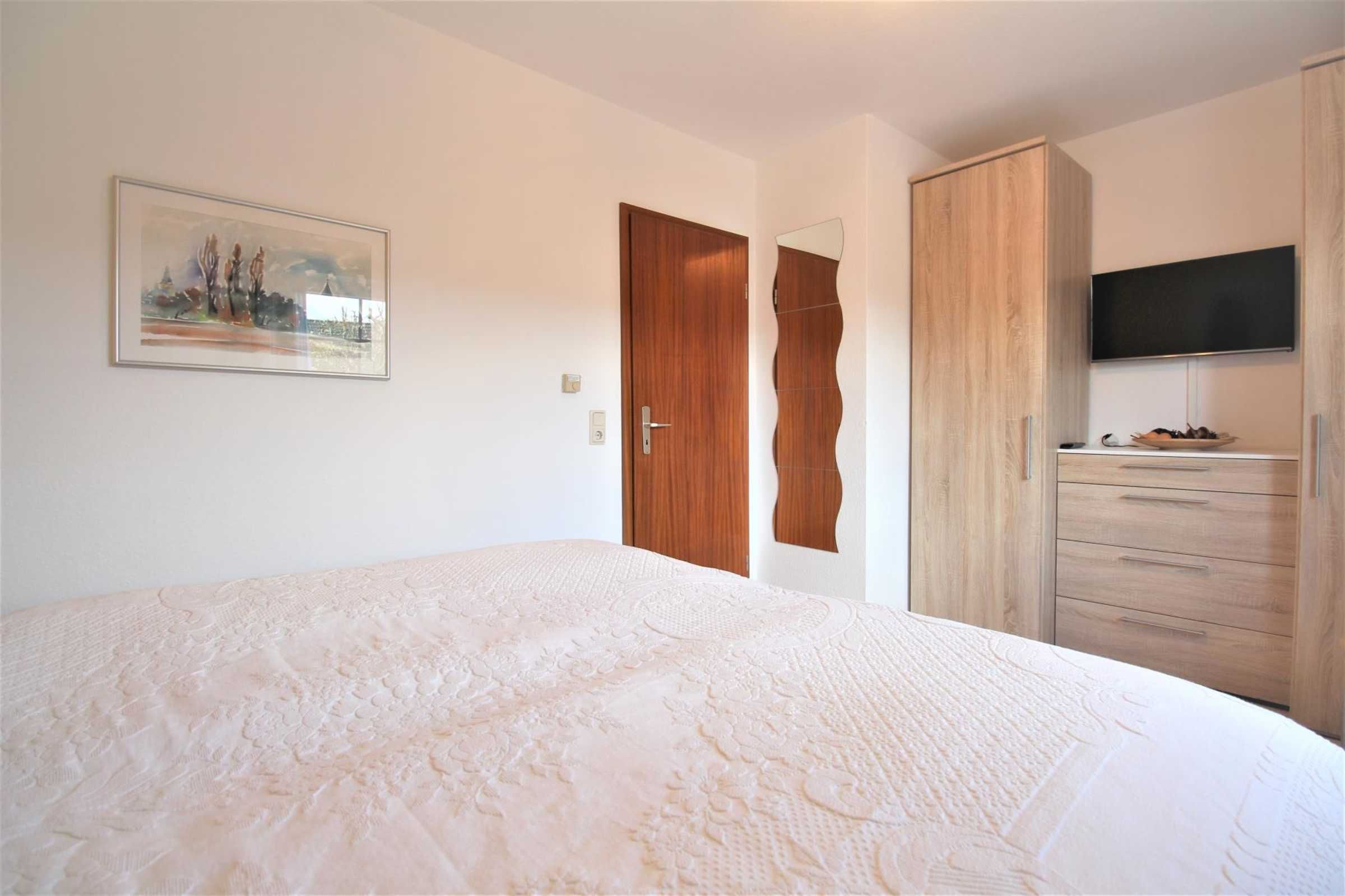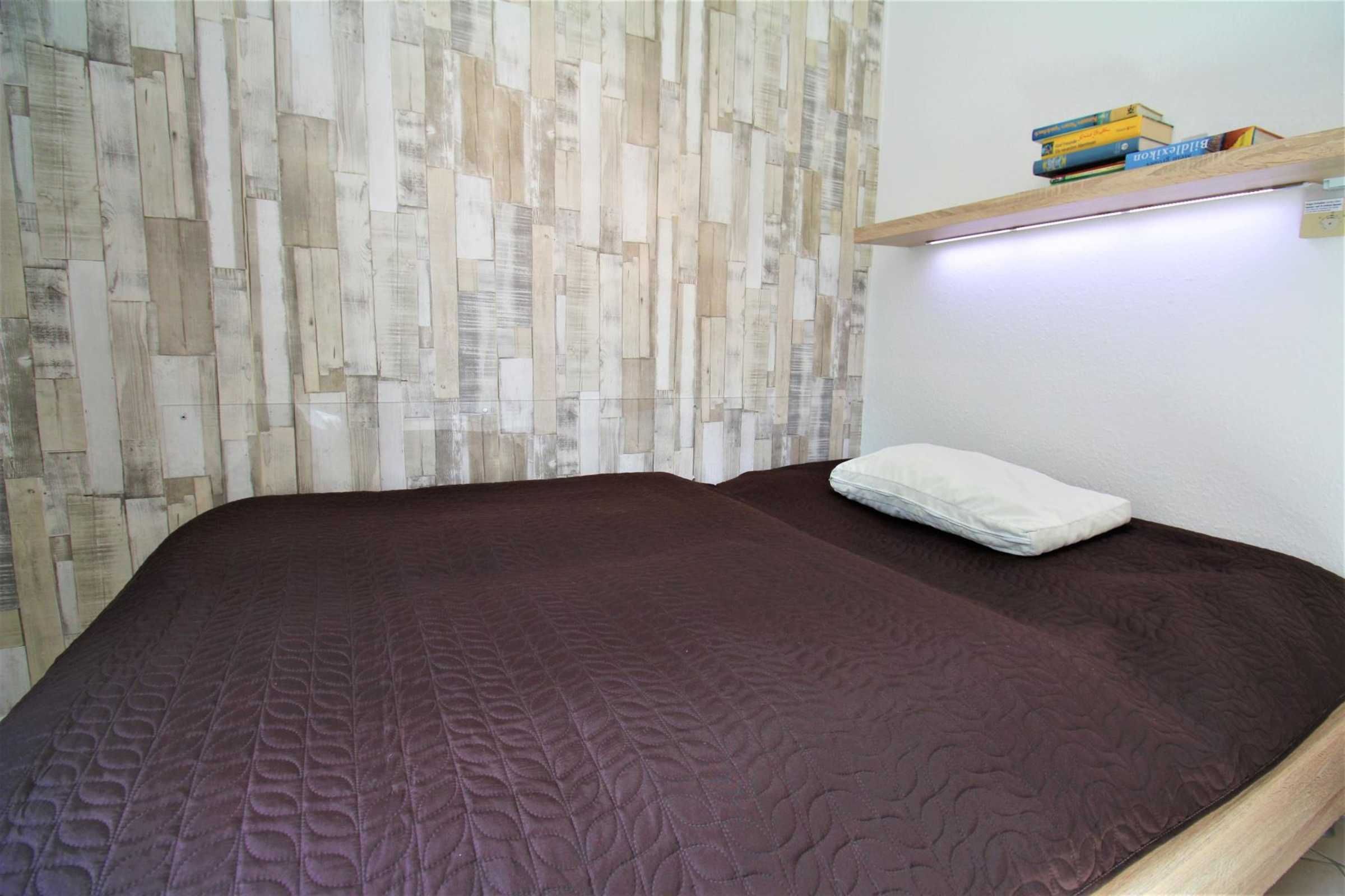 Die komplett geflieste Wohnung verfügt über 2 modern eingerichtete Schlafzimmer, wobei das größere ein Boxspringbett (180 cm x 200 cm) und das kleinere ein Futonbett (140 cm x 200 cm) hat. Beide Schlafräume sind mit einem Flachbildfernseher ausgestattet, das kleinere mit DVD-Player und einem kleinen Tisch.
