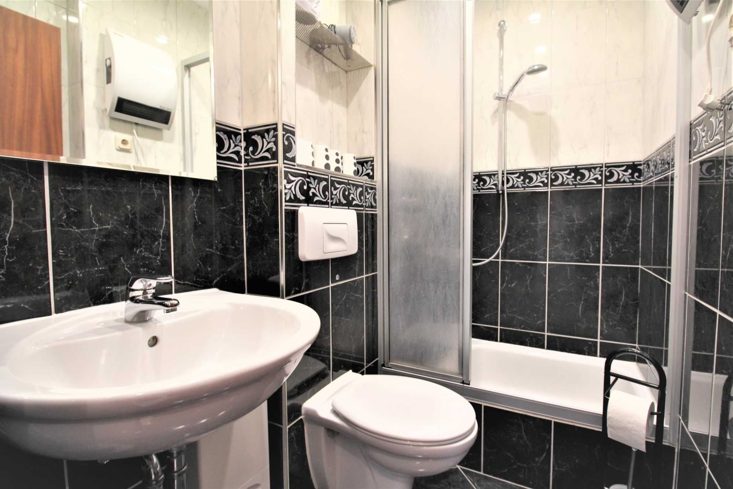 Das exklusive Badezimmer verfügt über Dusche und WC.