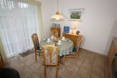Die beiden großen Fenster des Wohnzimmers geben den Blick frei auf die Südterrasse, die den ganzen Tag von der Sonne beschienen wird. Dort stehen ein Sonnenschirm und ein Gartentisch mit vier Stühlen, außerdem noch eine bequeme Relax- Liege und ein Strandkorb. Aus Rücksicht auf die anderen Gäste rauchen Sie bitte nur auf dieser - teilweise überdachten - Terrasse.