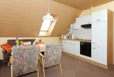 Größe ca. 50 Quadratmeter, Wohnraum mit integrierter Küche, Schlafzimmer, zweites separates, Schlafzimmer/Kinderzimmer, Badezimmer mit Dusche, Waschtisch und WC, Obergeschoss, Terrasse (Gemeinschaftsterrasse), optimal für 2 bis 4 Personen.