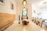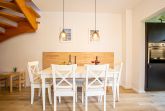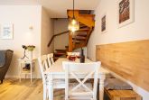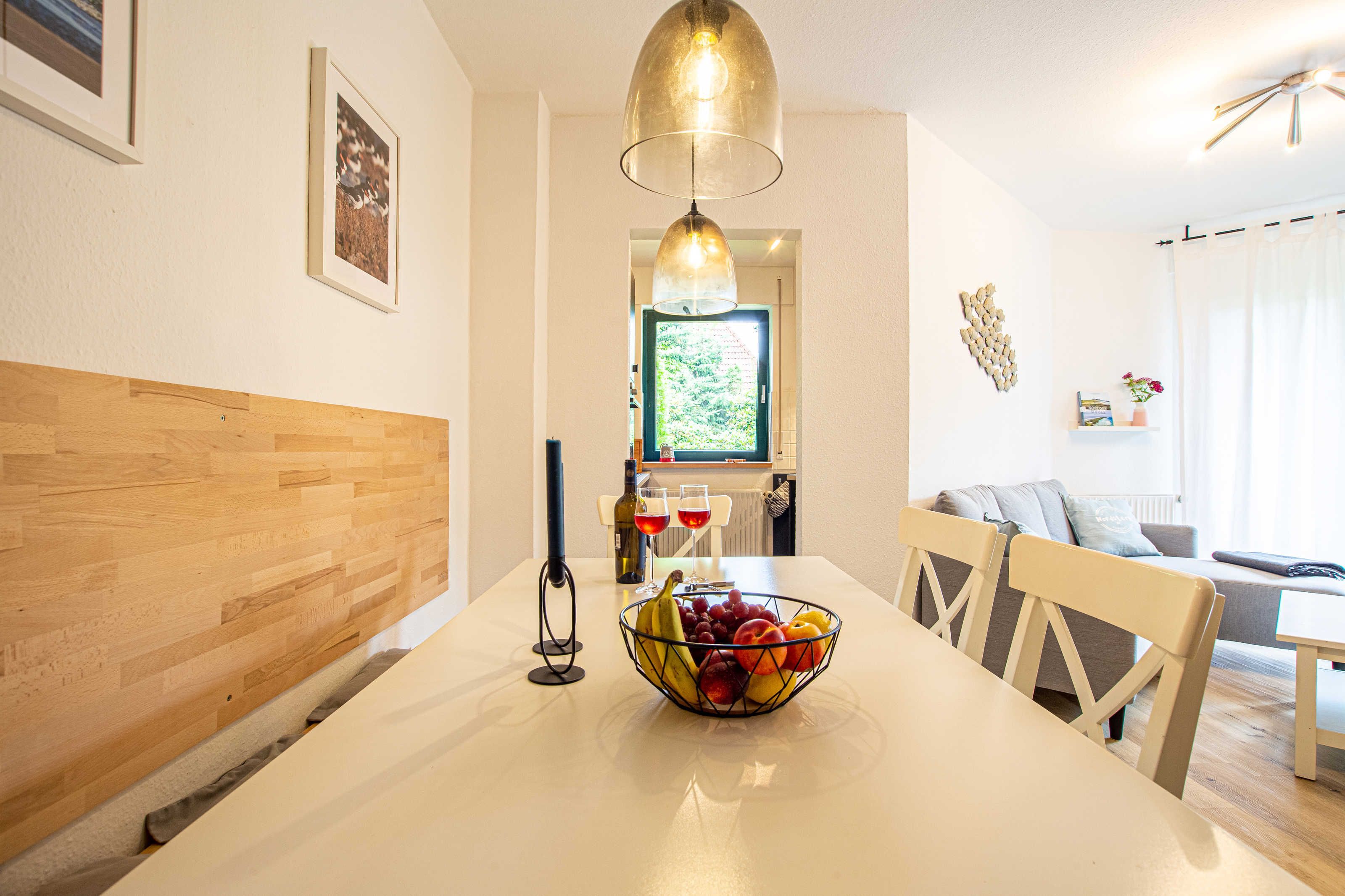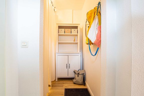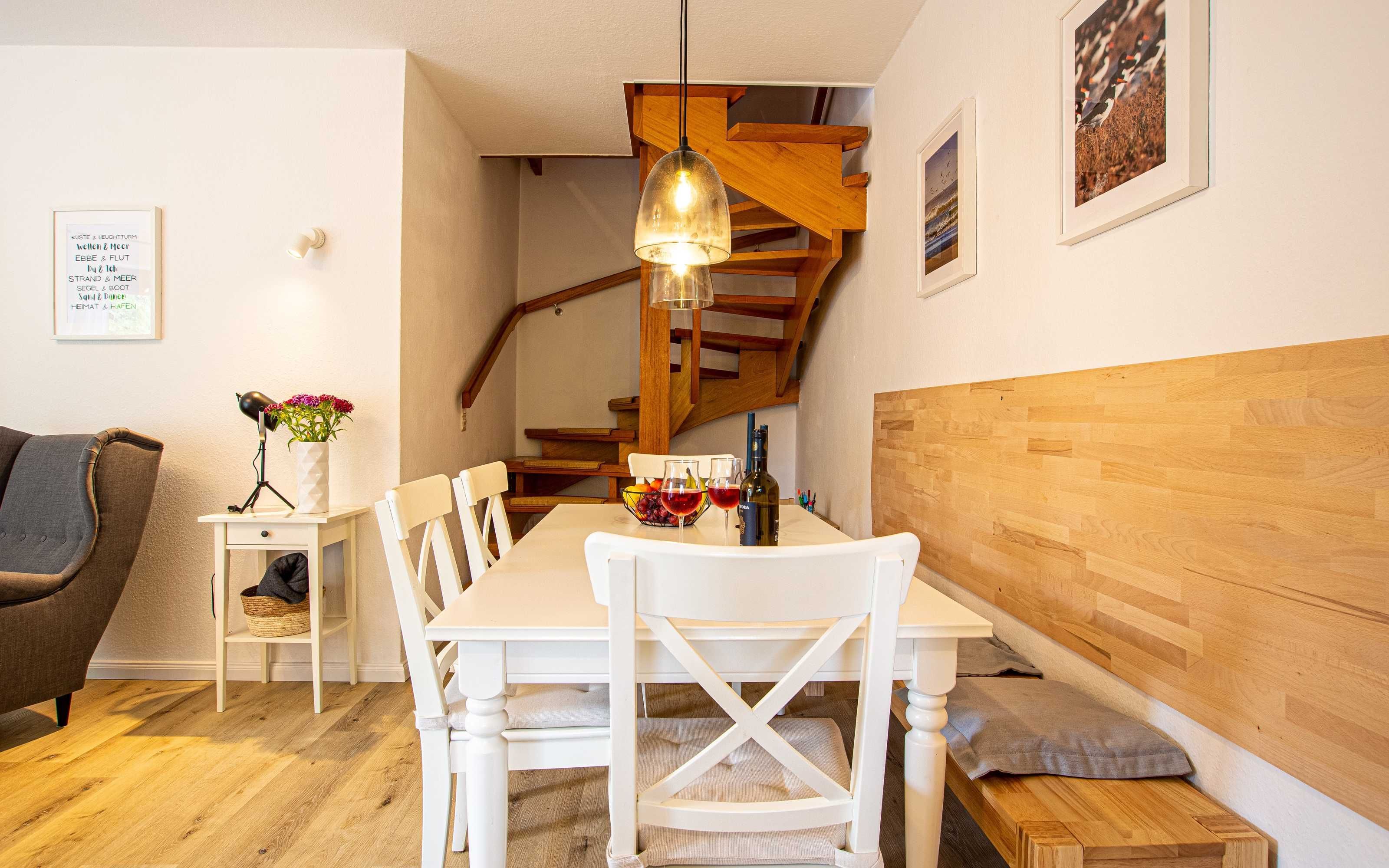 Unser Haus Nordstern in der Danksteder Str. 23D mit direktem Stellplatz vor dem Haus freut sich auf seine Gäste. Von der Diele gelangen Sie zum Gäste-WC und der Garderobe mit Waschmaschine. Im Wohnzimmer laden ein gemütliches Sofa sowie ein Sessel zum Verweilen ein. Der großzügige Essbereich und die vollausgestattete über Eck gebaute Küche bieten Platz und allen Komfort.