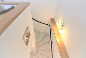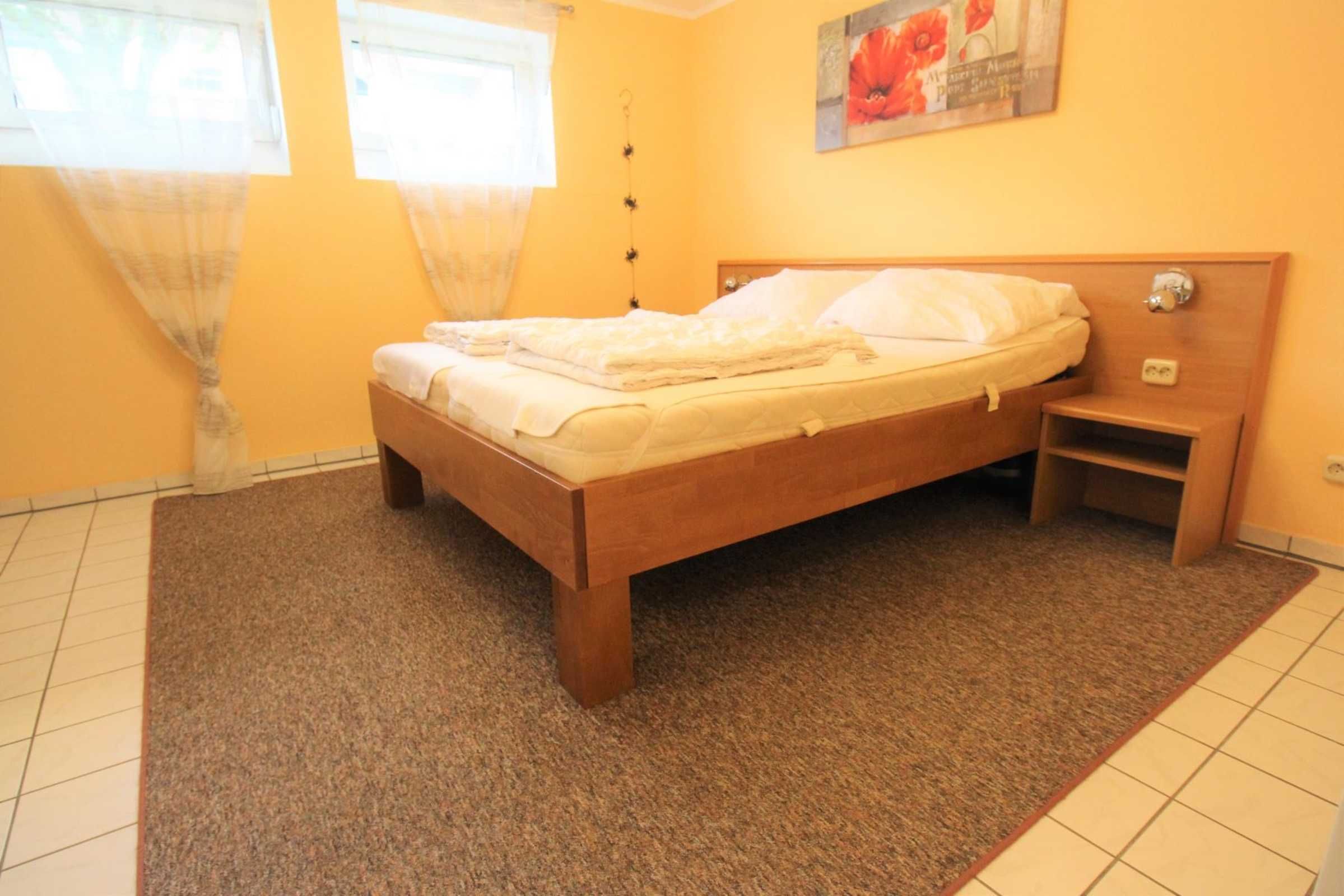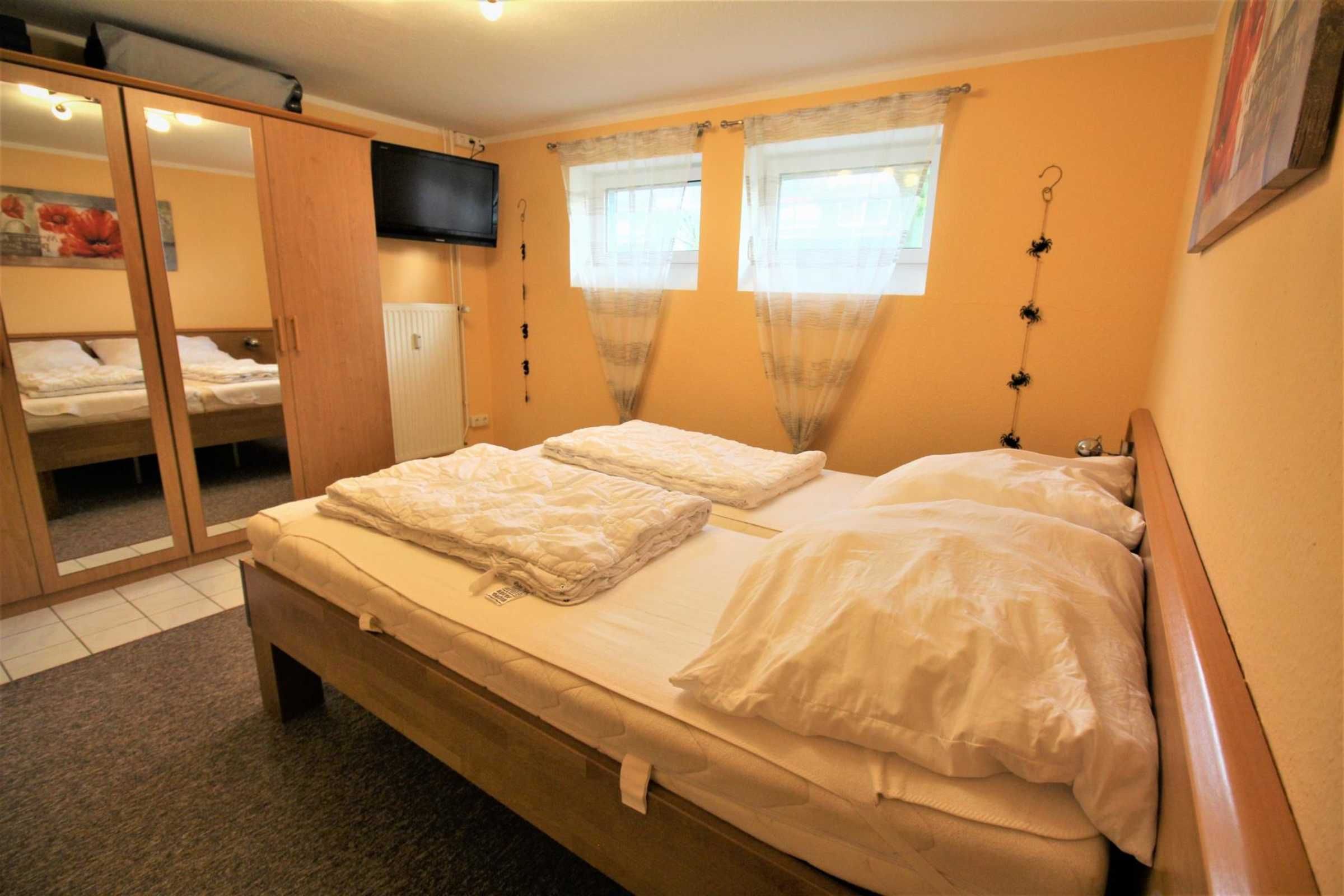 - ein Schlafzimmer im Untergeschoss mit Doppelbett und LED-TV mit Smart-Funktion (Streamen über WLAN kostenfrei möglich) und Kabelfernsehen