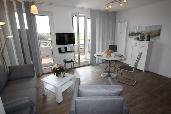 Sat TV, großer Balkon mit gemütlichem Strandkorb und Markise, PKW Stellplatz direkt vor dem Haus.
