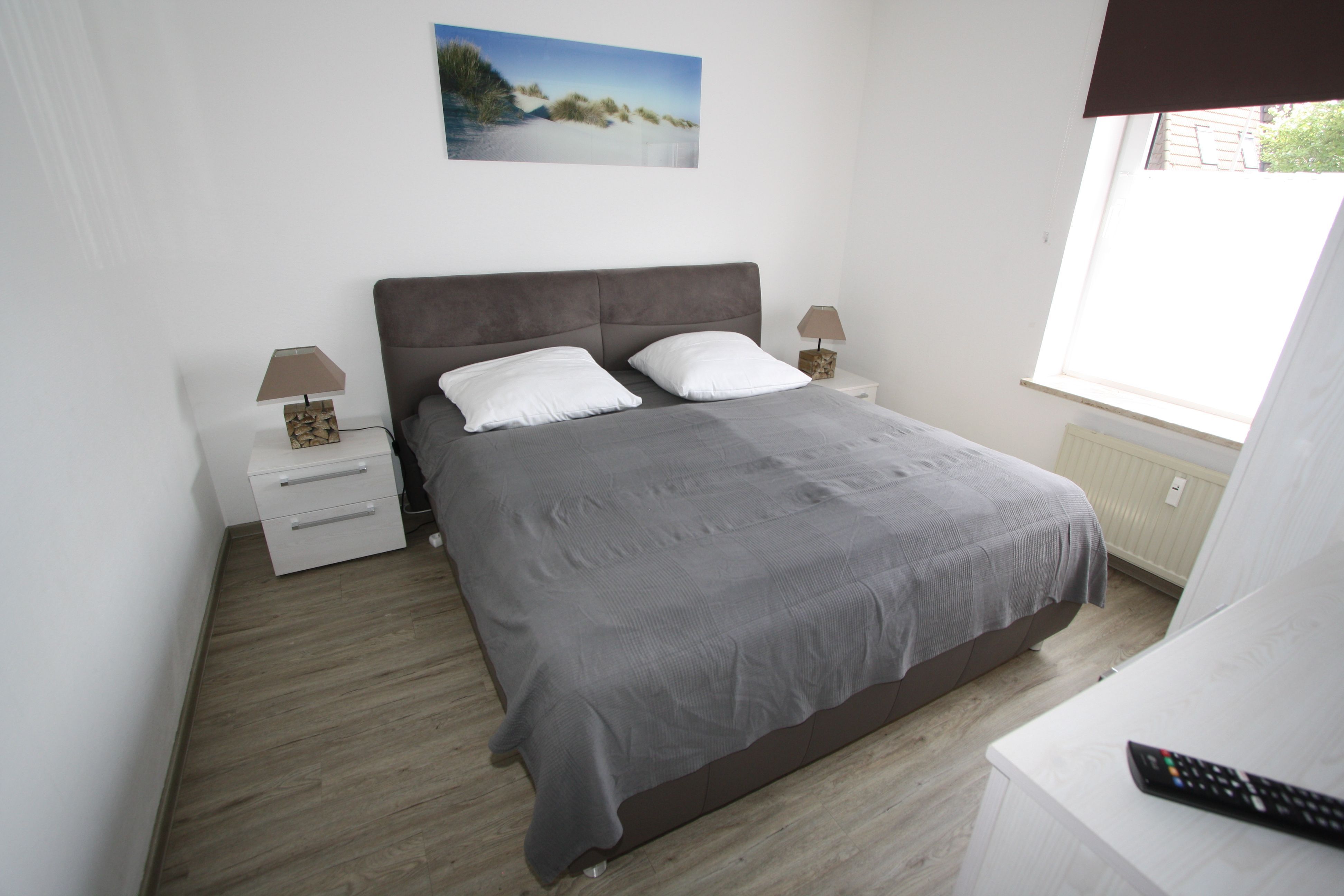 - Ein stilvolles Schlafzimmer mit Doppelbett, Komfortmatratzen u. TV