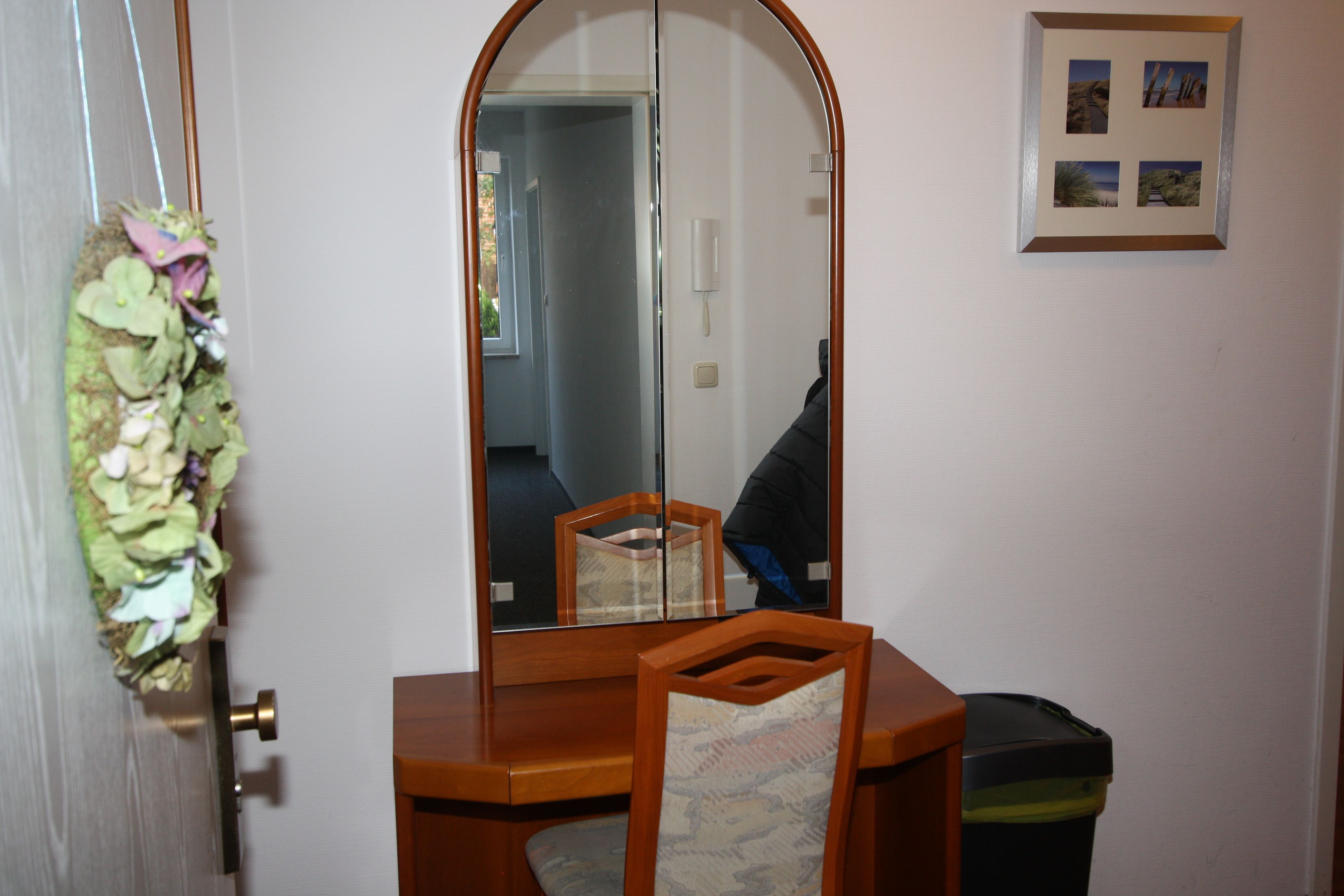 Garderobe, beleuchteter Schminktisch, Wandschrank mit kostenlosem Wandsafe, Koffertrolli, Reinigungswerkzeug, Strandutensilien, Bügeleisen, Bügelbrett, Stauraum