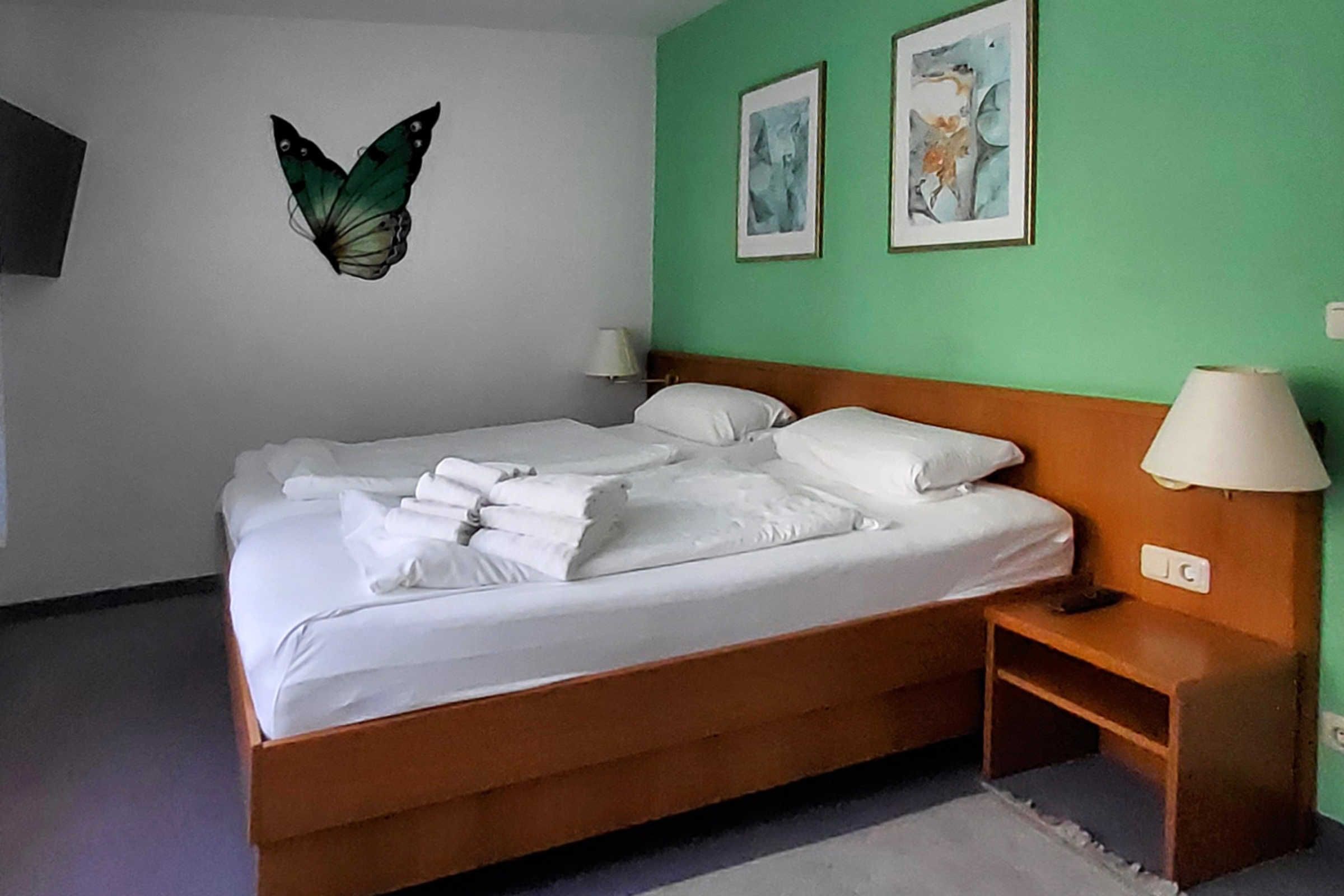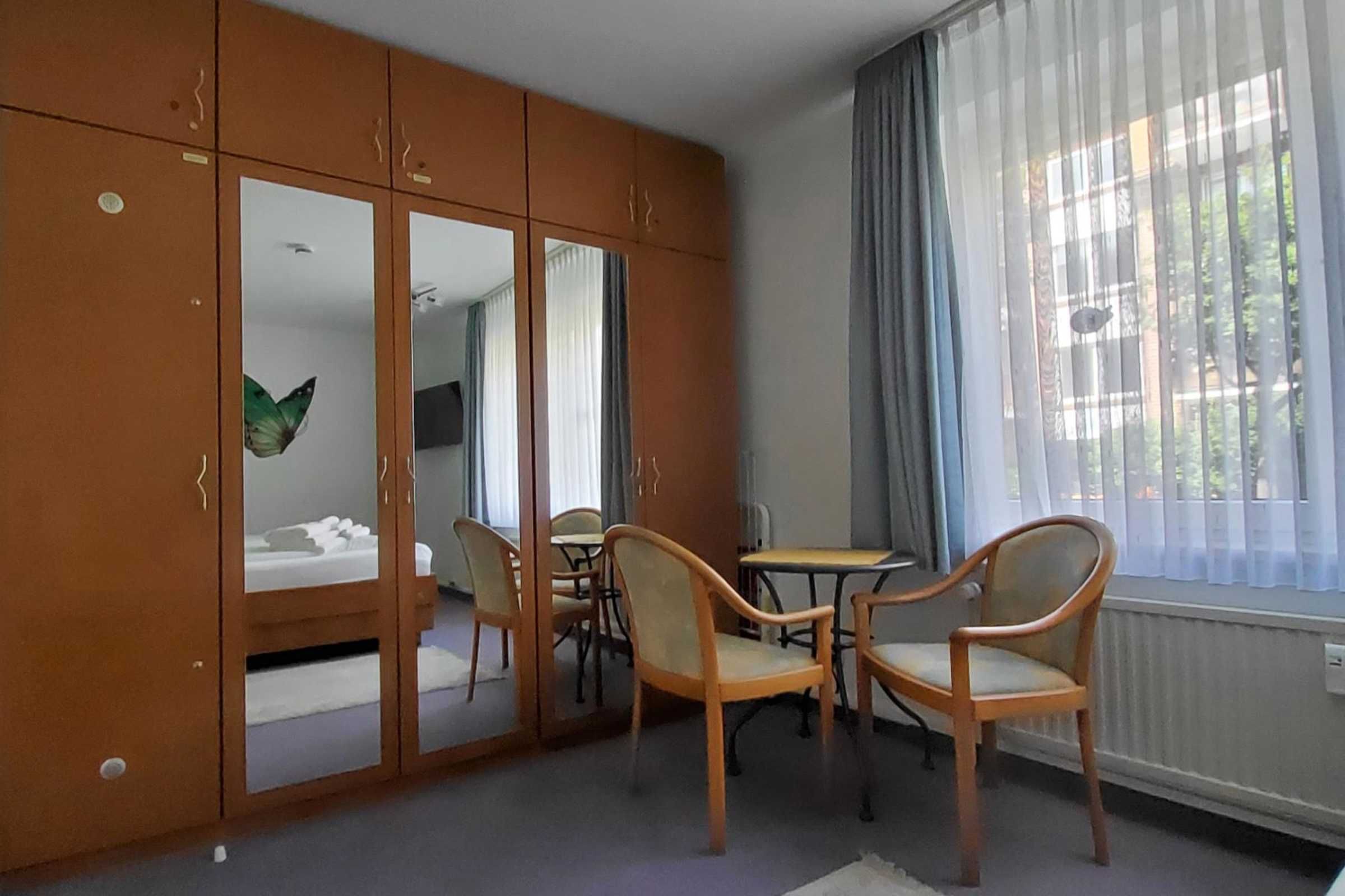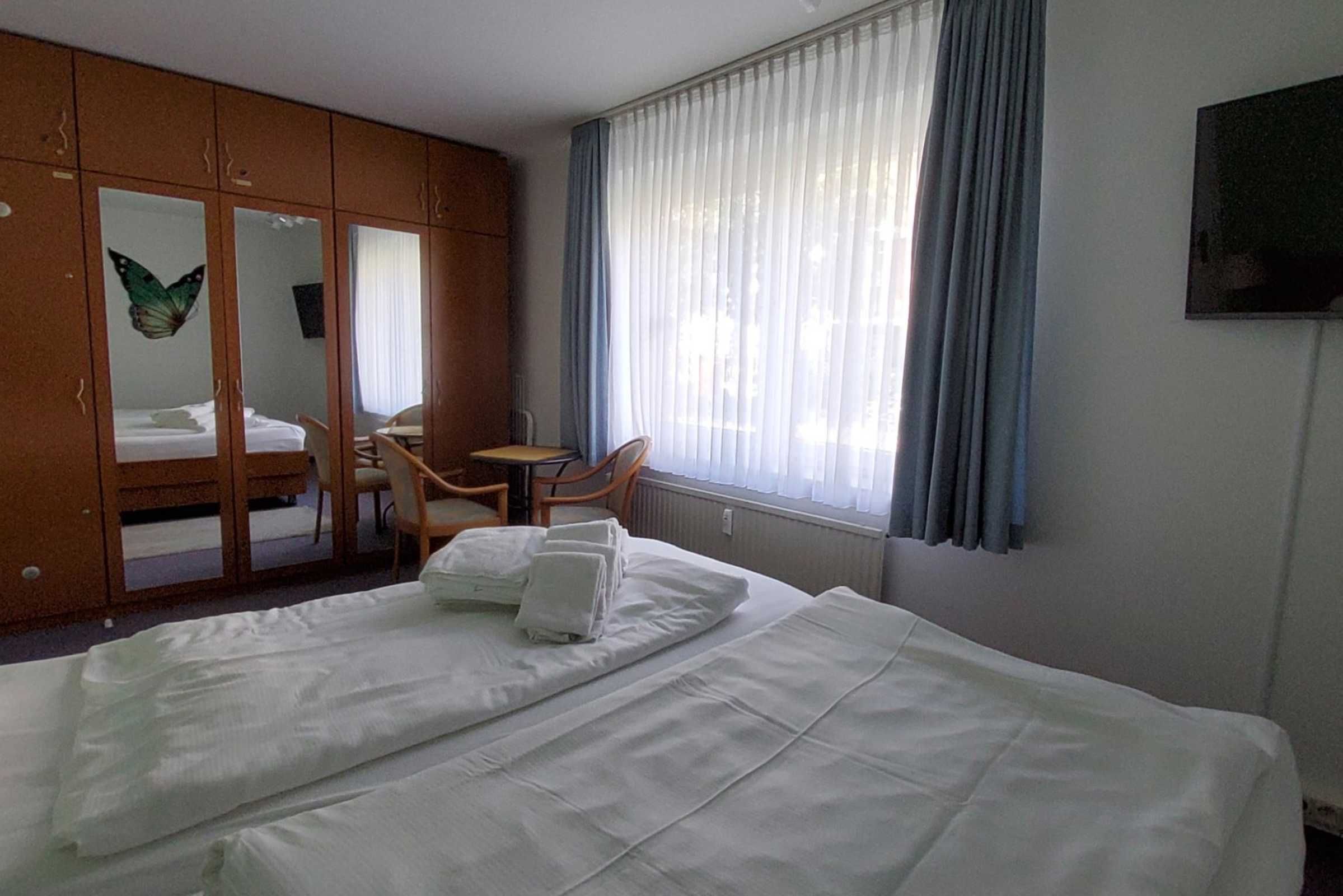 Schlafzimmer: Komfortables Doppelbett mit erhöhter Liegefläche und Topper für einen erholsamen Schlaf, verstellbaren Lattenrosten, großer Kleiderschrank mit Ganzkörperspiegel, verstellbaren zweiter 42(108 cm) LED-TV mit Internetfunktion, kleiner Sitzgruppe, kostenloser Tresor, Fenster mit Verdunklungsrollo, abschließbare Fenstergriffe, Radiowecker.