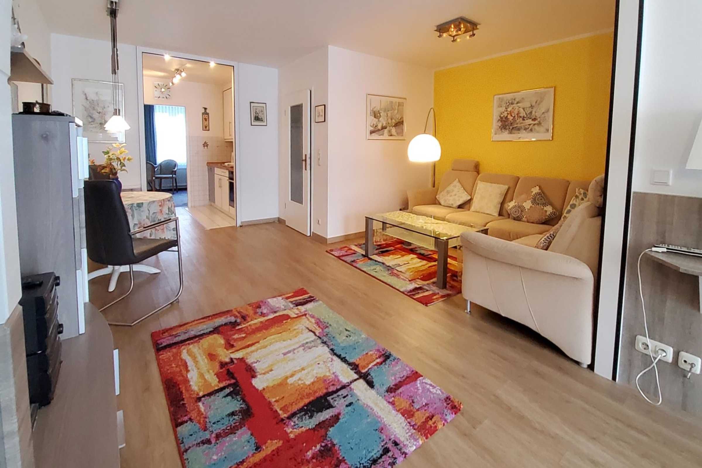 Sie wohnen in einer hochwertigen und großzügigen 3-Zimmer Ferienwohnung für bis zu 4 Personen auf ca. 70 m² Wohnfläche im Erdgeschoss mit großer möblierter nach Süden ausgerichteter Terrasse und Markise.
