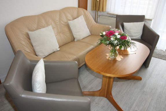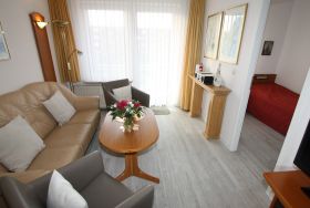 Sie wohnen in einem großzügigen 2-Zimmer-Appartement für bis zu 4 Personen auf 53 m² Wohnfläche im 2. Obergeschoss: ein separates Schlafzimmer mit zwei Einzelbetten, Wohnraum mit integriertem Schlafbereich und Doppelbett, Flachbild-TV, HiFi-Anlage, DVD-Player, separater Essplatz, voll ausgestatteter Küchenbereich mit Geschirrspüler, Ceranfeld, Backofen und Mikrowelle. Dusche/WC, Süd-Balkon, Tresor, WLAN.