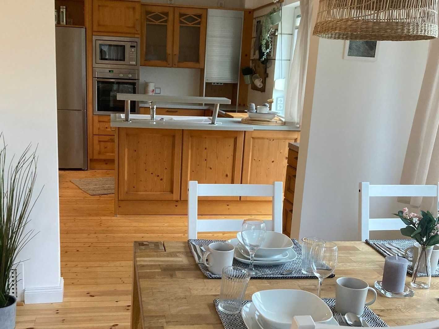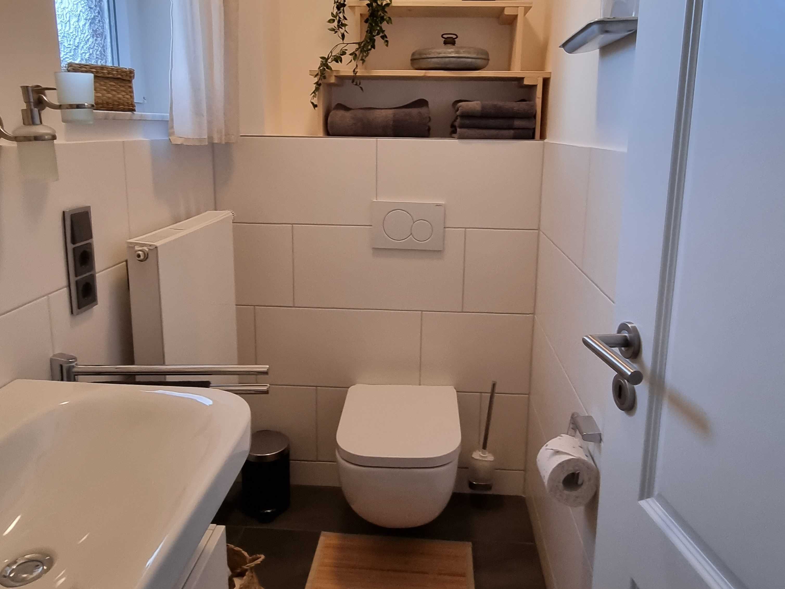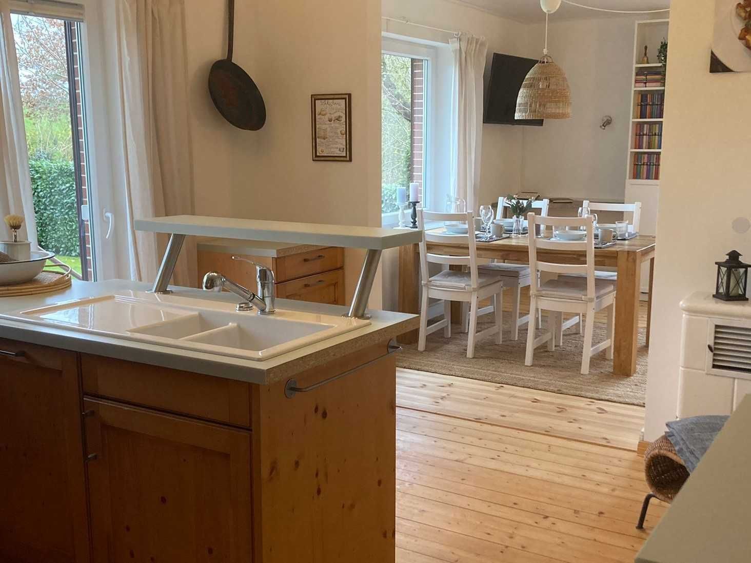 Ganz neu ausgebaute, helle Wohnung, modern eingerichtet. Offene, komplett ausgestattete Küche und ein Schlafzimmer mit großem Doppelbett. Wohn- / Esszimmer mit zusätzlicher Schlafcouch, dazu ein Badezimmer mit WC und Dusche. Die Ferienwohnung hat einen separaten Eingang, einen PKW-Stellplatz auf dem umzäunten Grundstück und vor der Küche befindet sich eine Sonnenterrasse mit Garten- und Grillgarnitur. Es handelt sich um eine reine Nichtraucherwohnung mit Holz- bzw. Fliesenböden, hohen Zimmern in sehr ruhiger Lage an einer Anwohnerstraße direkt am Elbdeich.