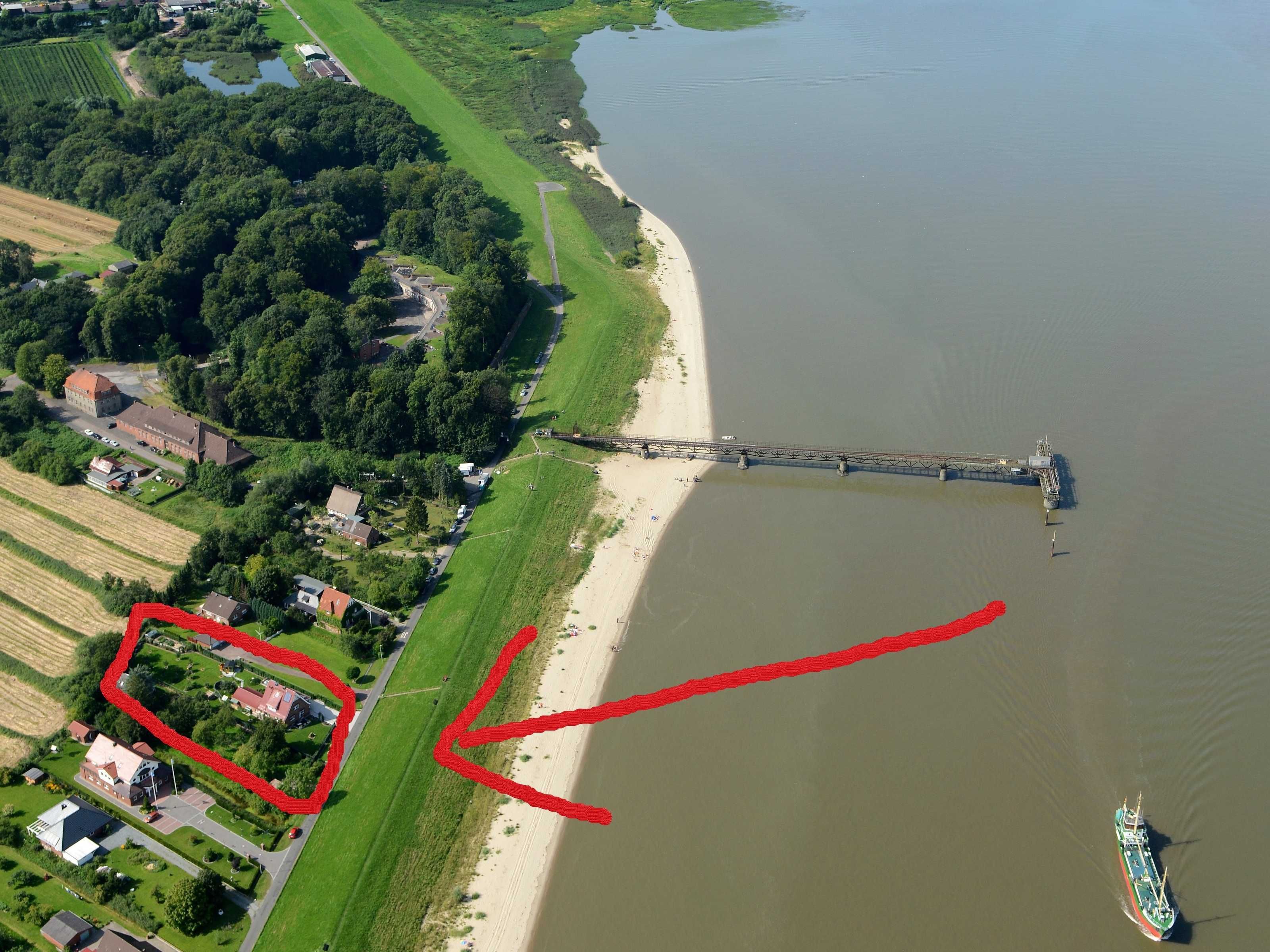 Näher am weitläufigen Sandstrand und an der Elbe mit ihren dicken Pötten geht nicht! Unmittelbar am Abbenflether Elbdeich, direkt gegenüber der Elbinsel Pagensand, in erster Reihe an einer sehr ruhigen Anwohnerstraße gelegen! Nur der grüne Deich trennt das frisch renovierte Kapitänshaus vom feinen Sand des Strandes und den riesigen Containerschiffen oder Kreuzfahrern auf der Elbe! Ganz neue ( 2022 ) , ca. 68m² große Ferienwohnung, Sonnenterrasse, umzäuntes Grundstück ! Ein gut erzogener Hund ist bei uns jederzeit willkommen! Ein Schlafzimmer für zwei Erwachsene, Schlafcouch für eine weitere Person(-en) im Wohn- / Esszimmer, ein Bad mit WC und Dusche, üppig ausgestattete, offene Küche, eigener Eingang und PKW-Stellplatz auf dem Grundstück. Einige wenige Stufen zur Eingangstür und auf die Sonnenterrasse, daher ist die Wohnung leider NICHT behindertengerecht .
