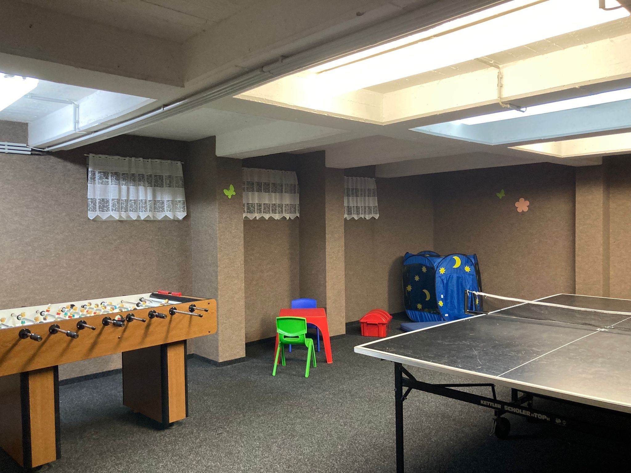 Freizeitangebote: Spielraum mit Tischtennis, Kicker und Bällebad, Kinderspielplatz, Schwimm- und Saunamöglichkeiten in einem der größten Meerwasserbrandungsbäder, dem Thalassozentrum ahoi! im nahen Ortsteil Duhnen.