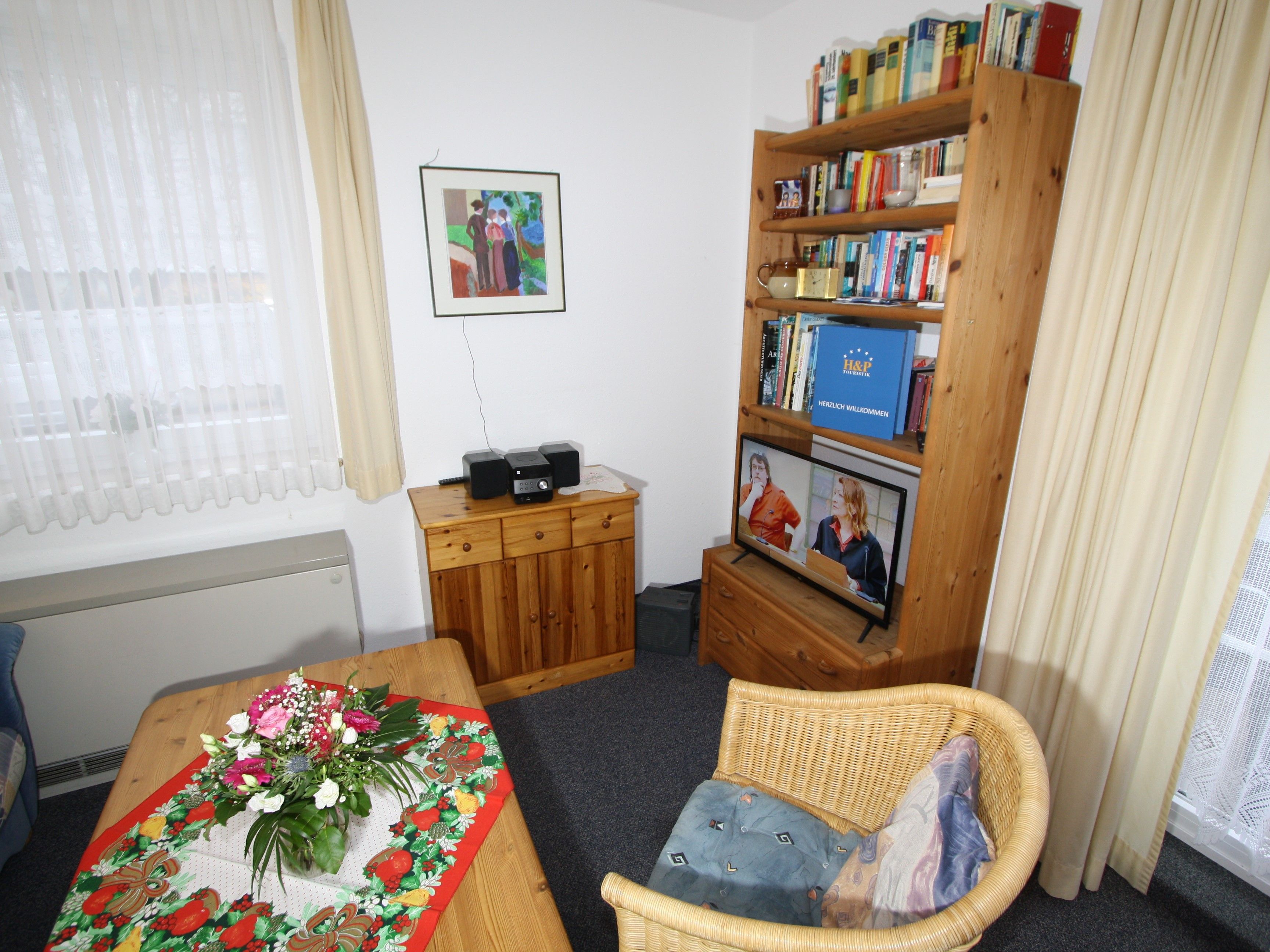 Mikrowelle sind vorhanden. Ein Fernseher mit Kabelanschluss, Stereoanlage mit CD-Spieler und eine kleine,