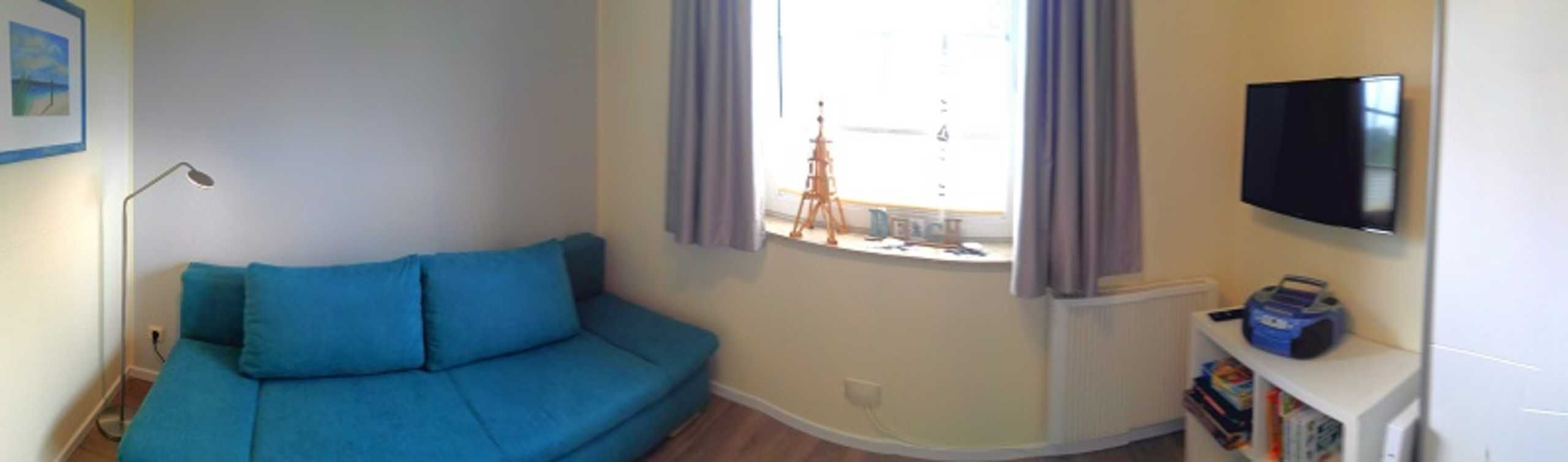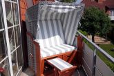 Auf dem zur südseite-gelegenden Balkon haben wir für Sie einen Strandkorb bereitgestellt. Außerdem ist auch eine elektrische Markise angebracht, sodass Sie auch schon Ihr Frühstück im Freien genießen können. Zusätzlich finden Sie einen Safe in der Wohnung.