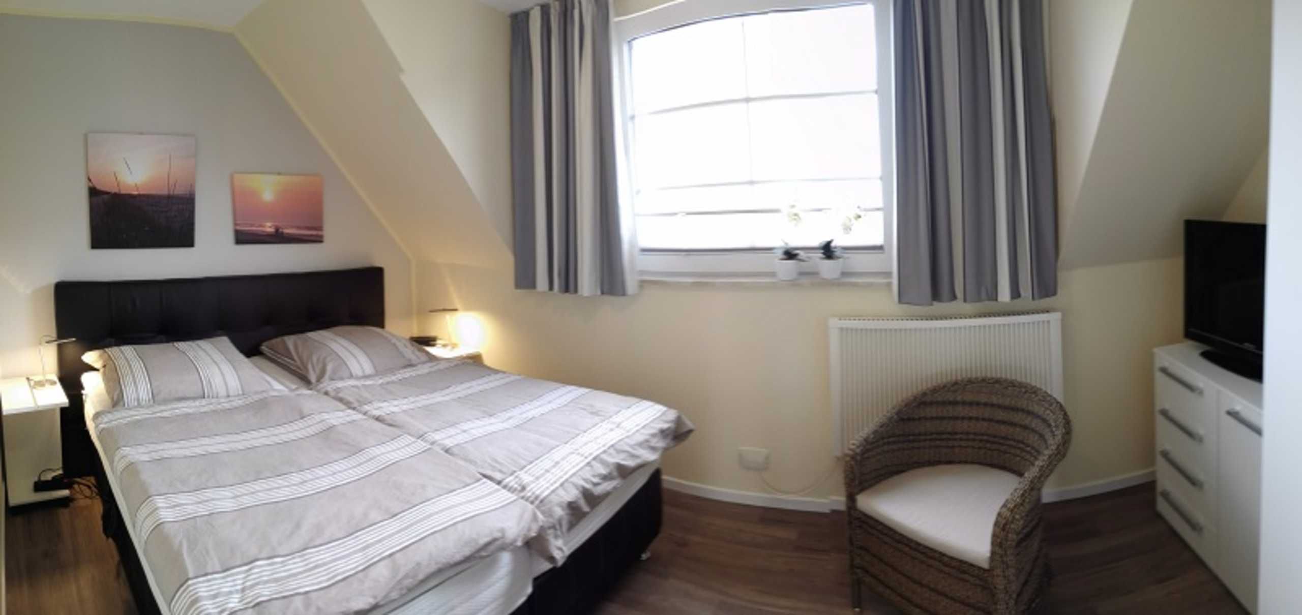 Das Elternschlafzimmer ist mit einem motorisiertem Boxspringbett (geteilt, 180 cm x 200 cm) ausgestattet. Auch hier finden Sie einen Flachbildschirm/TV (81 cm) vor. Im Kinderzimmer befindet sich auch ein Boxspringbett (140 cm x 200 cm). Auch dieser Raum ist mit einem Flachbildschirm/TV (81 cm) und einem Radio (CD- und Kassettenplayer) bestückt. Alle Schlafräume sind mit Verdunklungsvorhängen dekoriert. Die Fenster und die Balkontür sind mit Insektenschutzrahmen versehen. Das Bad (inklusive Föhn) lädt zum Verwöhnen ein.
