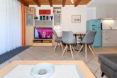 Das Ferienhaus „Hus achtern Diek“ sehr gemütlich eingerichtet und gestaltet sowie sehr gut ausgestattet. Es gibt zum Beispiel eine Küche mit Geschirrspülmaschine und eine große teilüberdachte Terrasse am Wohnzimmer mit direktem Gartenzugang sowie eine südlich ausgerichtete Loggia (überdachter Balkon).