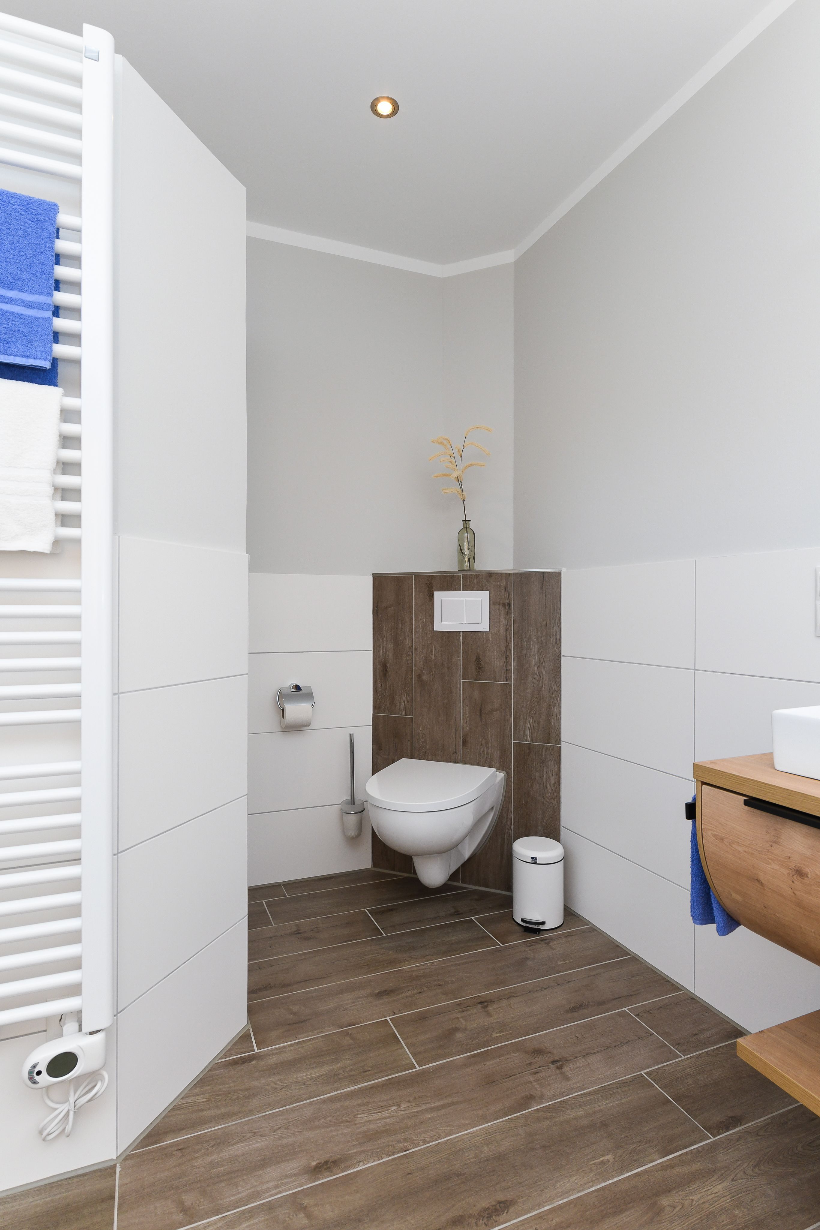 zweites Badezimmer mit Dusche, Waschtisch und WC