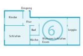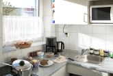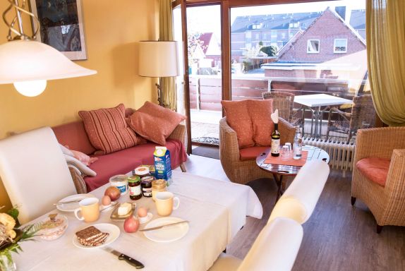 Die 53 qm große Nichtraucher-Wohnung im 1. OG für bis zu 5 Personen besteht aus einem Wohnraum mit bequemer Couch, einem Schlafraum mit Doppelbett (ohne Fußbrett) und Babybett, einem Kinderzimmer mit Etagenbetten, Küche mit Spülmaschine, Ceranfeld mit 4 Kochstellen, Mikrowelle und Kühlschrank mit 3-Sterne-Gefrierfach. Duschbad/WC. Die Wohnung ist komplett mit Teppich ausgelegt. In dieser Wohnung macht auch Ihr Haustier Ferien. Die möblierte Loggia ist nach Süden gerichtet. Die Wohnung befindet sich in der 1. Etage eines zweigeschossigen Ferienhauses im Kurviertel von Büsum (Meeresluftzone), 200 m von Grün- und Sandstrand und dem Nationalpark Wattenmeer entfernt. Zum Zentrum sind es ca. 15 Gehminuten.
