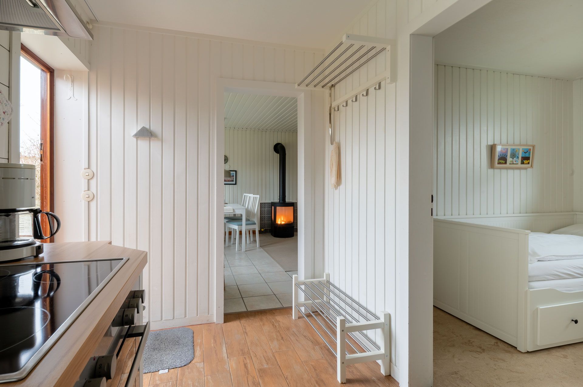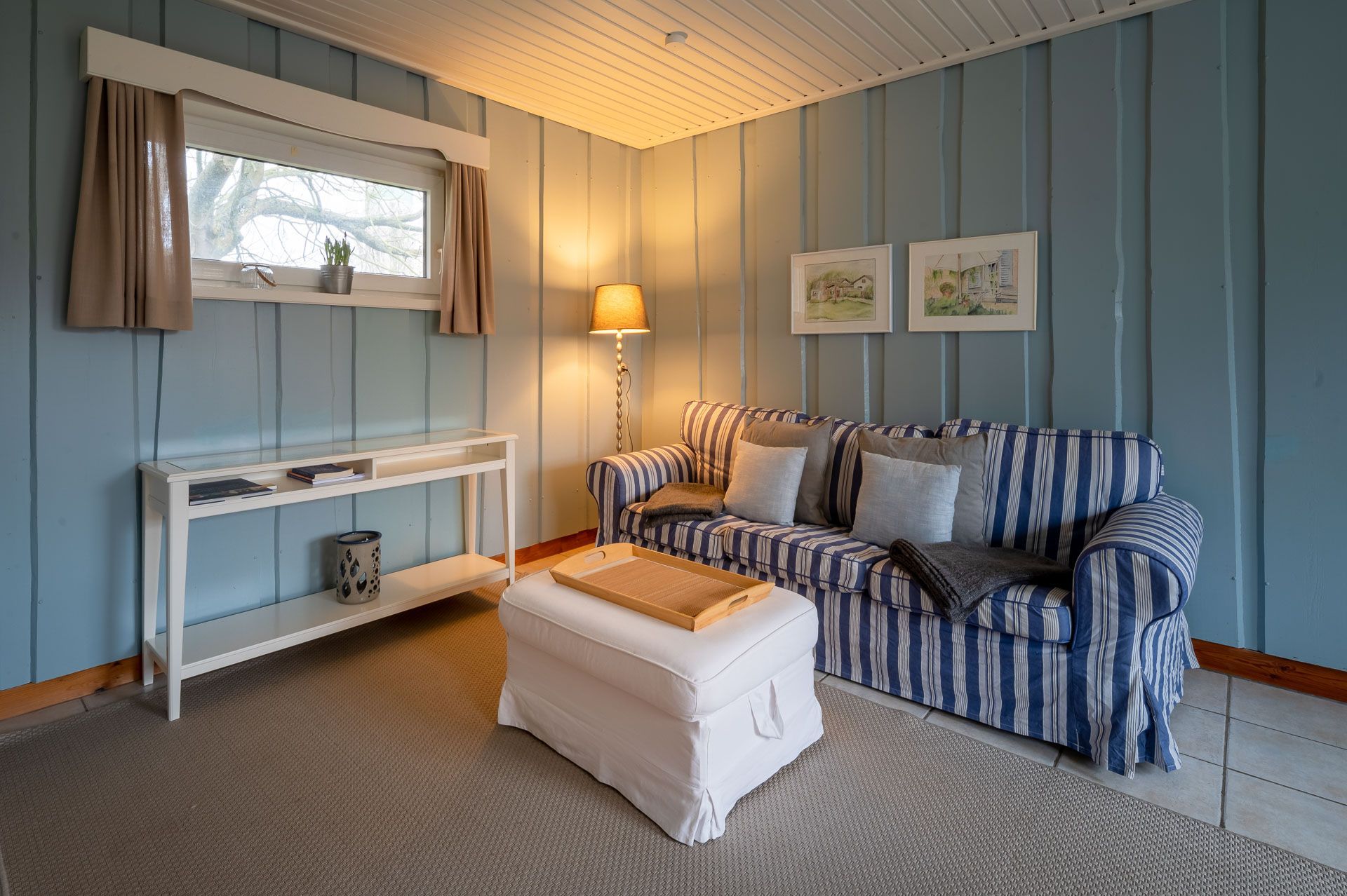 Erleben Sie einen erholsamen Urlaub in Haus Uwe, einem eingeschossigen Ferienhaus für bis zu 4 Personen. Das Haus verfügt über ein Wohnzimmer, zwei Schlafzimmer, eine Küche und ein Duschbad mit skandinavisch-rustikalem Interieur und Vollholzmöbeln, die je nach Jahreszeit ihre Farben wechseln. Ein Gaskaminofen im Wohnzimmer sorgt für wohlige Wärme. Die Einbauküche ist mit Herd/Ceranfeld, Backofen, Spülmaschine, Kaffeemaschine, Wasserkocher und Toaster ausgestattet.