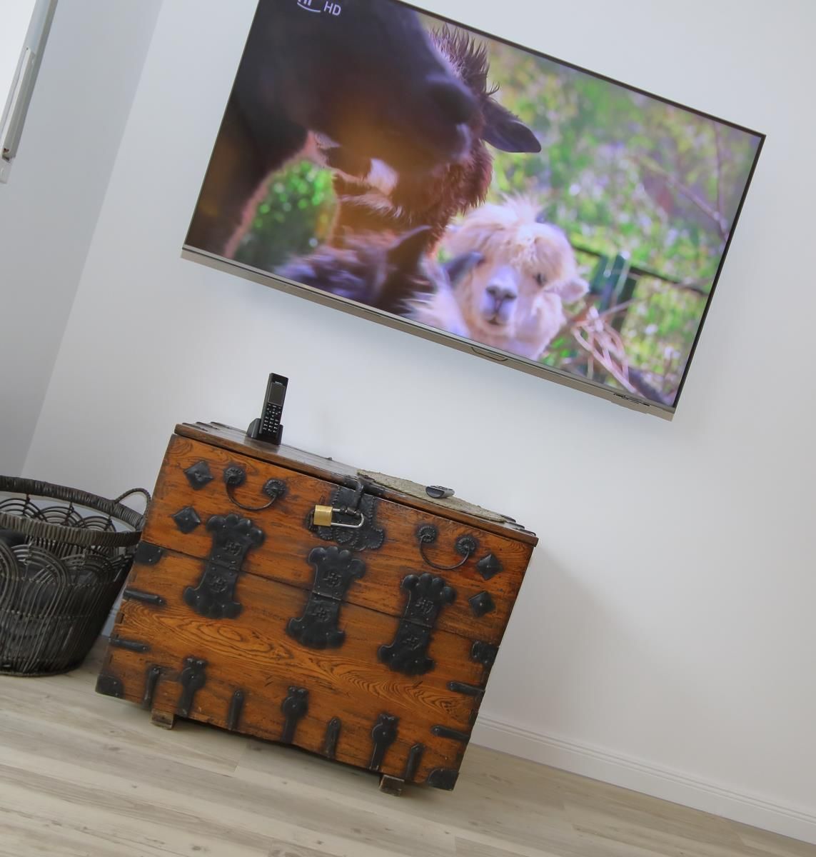 ca. 48 m². Wohnraum mit großer Couch, Sessel und separatem Eßplatz, Smart-TV, W-Lan Anschluss ( ohne Gewähr ), Nord-Westbalkon mit Balkonmöbeln, separate Küche mit Mikrowelle, 1 Schlafzimmer mit Boxspringbett, im kleinen Schlafzimmer/Kinderzimmer befindet sich ein ausziehbares Kojenbett für 2 Kinder.