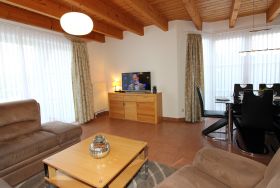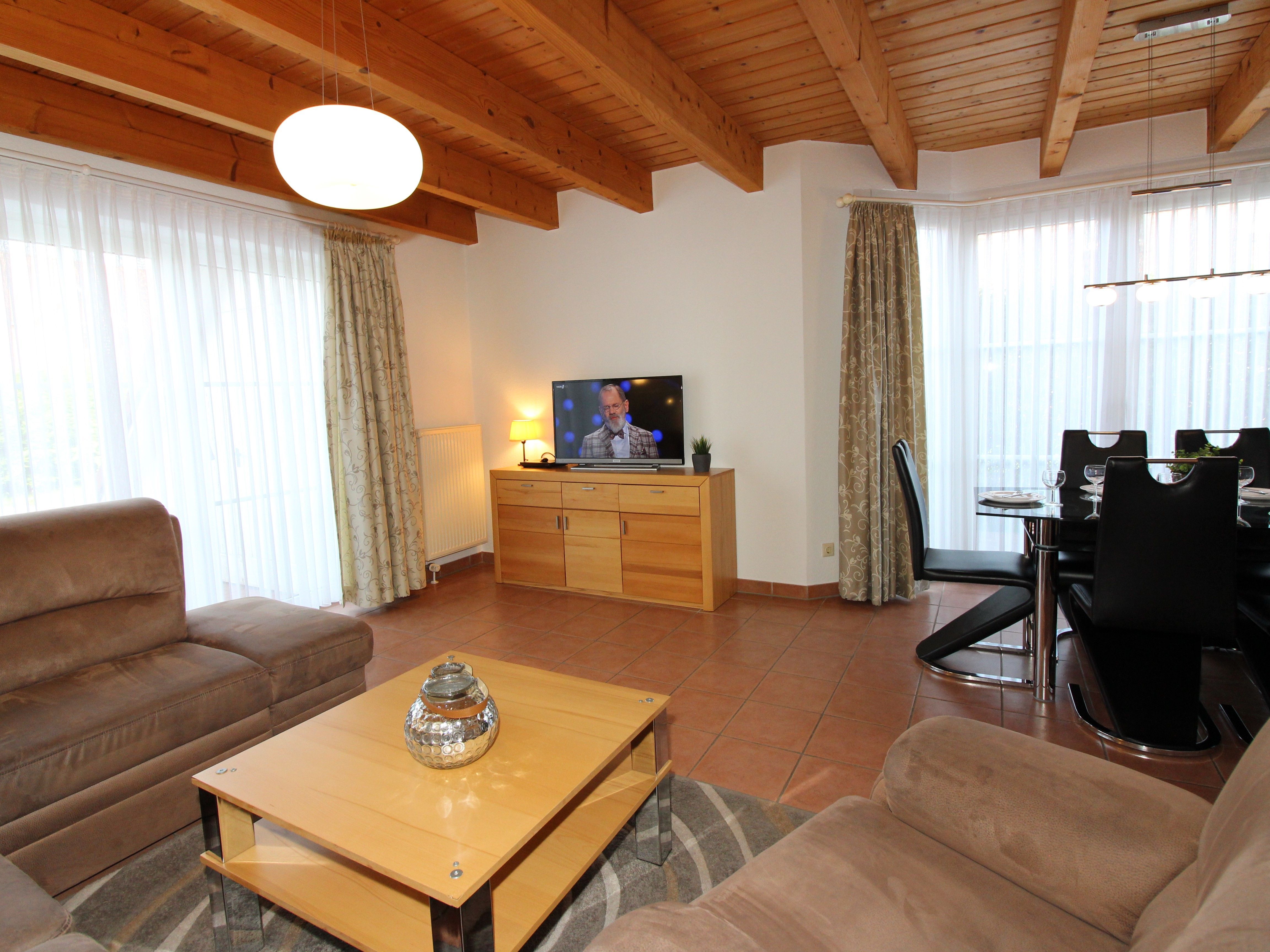 Sie wohnen in einem Ferienhaus für bis zu 6 Personen mit zwei Schlafzimmern, ca. 70 m², ein Schlafzimmer mit Doppelbett und Fernseher und ein Schlafzimmer mit zwei getrennten Betten und Fernseher, Wohn-/Schlafraum mit bequemer Doppelbettcouch und großen Fernseher, voll ausgestattetem Küche mit Backofen, Geschirrspüler und Mikrowelle und Backofen, separater Essplatz, Kabel-TV, Dusche/ WC, zusätzliche Toilette und zwei Terrassen, inklusive Kinderreisebett und Hochstuhl.