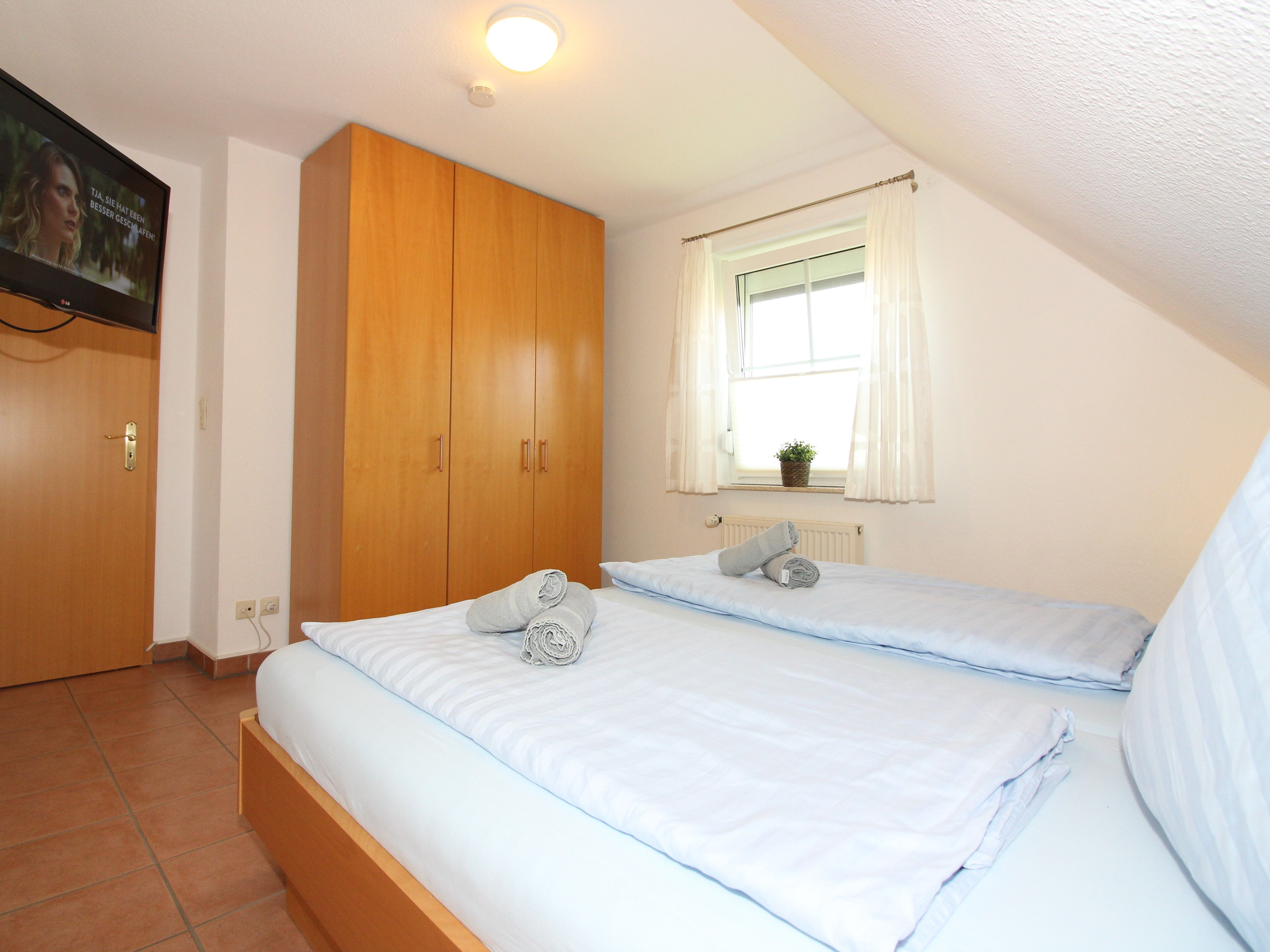 Die zwei Schlafräume mit LCD-TV und Außenrollos.