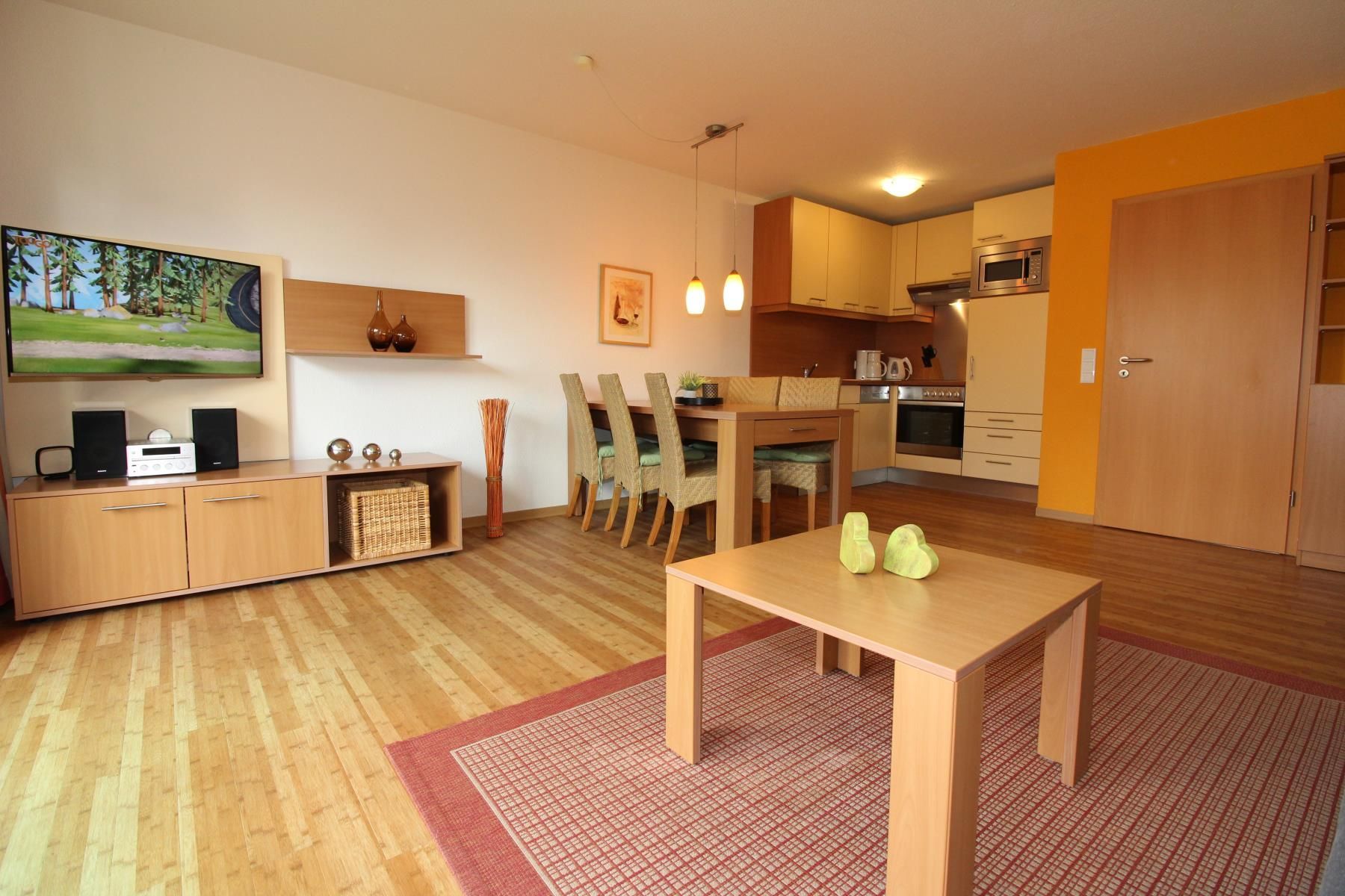 Verbringen Sie erholsame Urlaubstage mit der ganzen Familie in unserem komfortabel ausgestatteten Ferienhaus Nr. 104, mit ca. 70 m² Wohnfläche für bis zu 6 Personen.