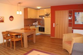 Im Erdgeschoss unseres über 72 m² großen Hauses finden Sie ein geräumiges Bad mit Dusche und WC, einen Abstellraum sowie eine sehr großzügige Wohnküche. Ob Mikrowelle, Geschirrspüler, Kinderhochstuhl, Backofen mit Ceranfeld, Kaffeemaschine, Toaster oder Wasserkocher alles ist im Haushalt vorhanden. Im sich anschließenden Wohnbereich haben am Esszimmertisch alle genügend Platz. Die ausziehbare hochwertige Schlafcouch für bis zu 2 Personen, ein großes 48 (120,7 cm) Ultra-HD Smart-TV (Kabel-TV) und DVD-Player stehen ebenso zur Nutzung bereit wie eine Hifi-Anlage (mp3-fähig, RDS-Radio). Für die kleinen und großen Gäste finden Sie einige Spiele sowie eine größere Auswahl von Filmen auf DVD und Büchern vor.