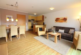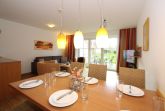 Hochwertige Esszimmermöbel, großzügige Einbauküche mit allen in einer zeitgemäßen Küche erforderlichen Gerätschaften wie Ceranfeld, Kühlschrank mit Gefrierfach , Mikrowelle, Toaster, Kaffeemaschine, Espresso- /Kaffeepad-Automat, elektr. Wasserkocher, Handmixer u. dgl. versehen.